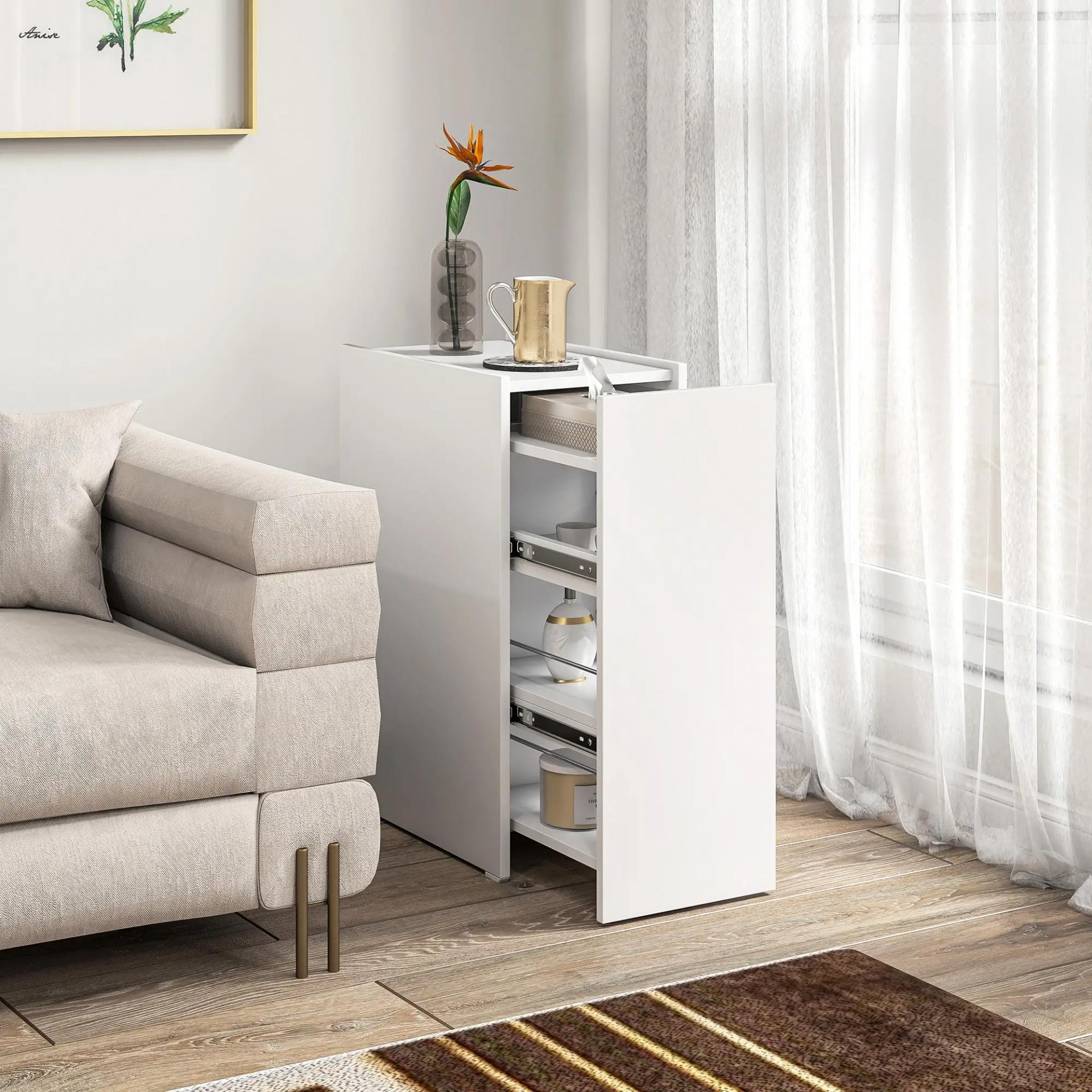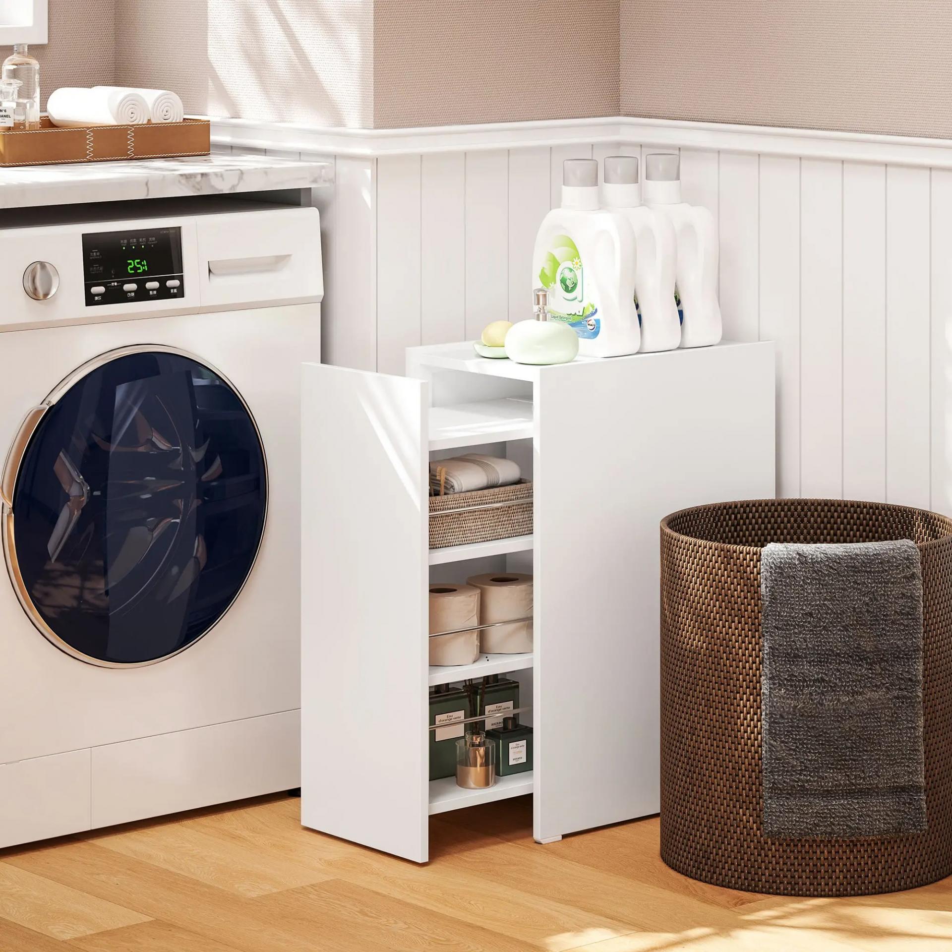- PERFECTO PARA ESPACIOS REDUCIDOS: Aprovecha cada rincón de tu baño con este mueble auxiliar de baño estrecho. Su diseño compacto te permite mantener todo en orden sin ocupar demasiado espacio, ideal para colocar junto al inodoro, la bañera o la lavadora