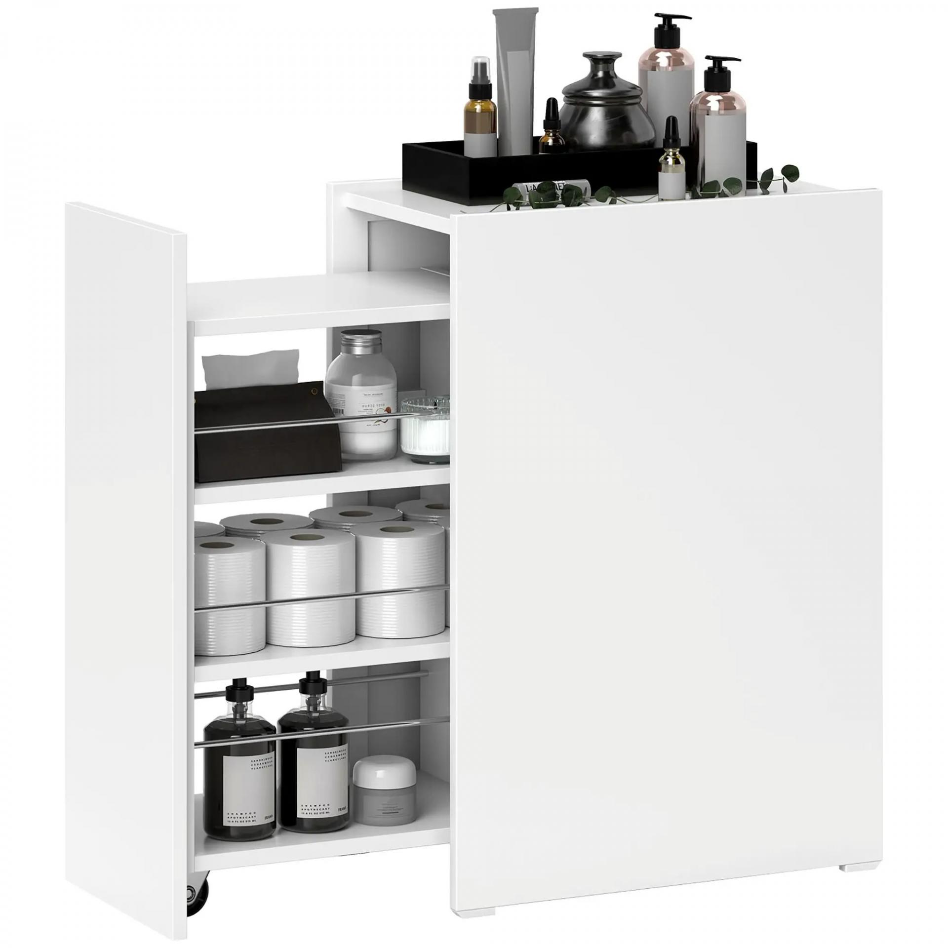 Mueble de Baño Estrecho con Cajón y Ruedas Organizador Independiente con 3 Compartimentos 47x30x66,5 cm Blanco