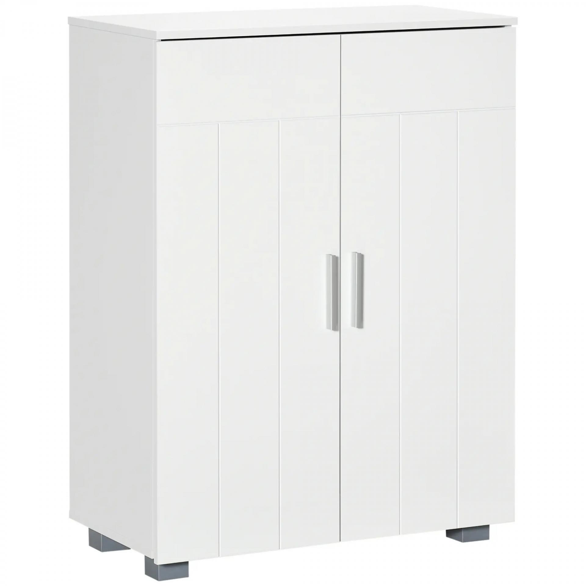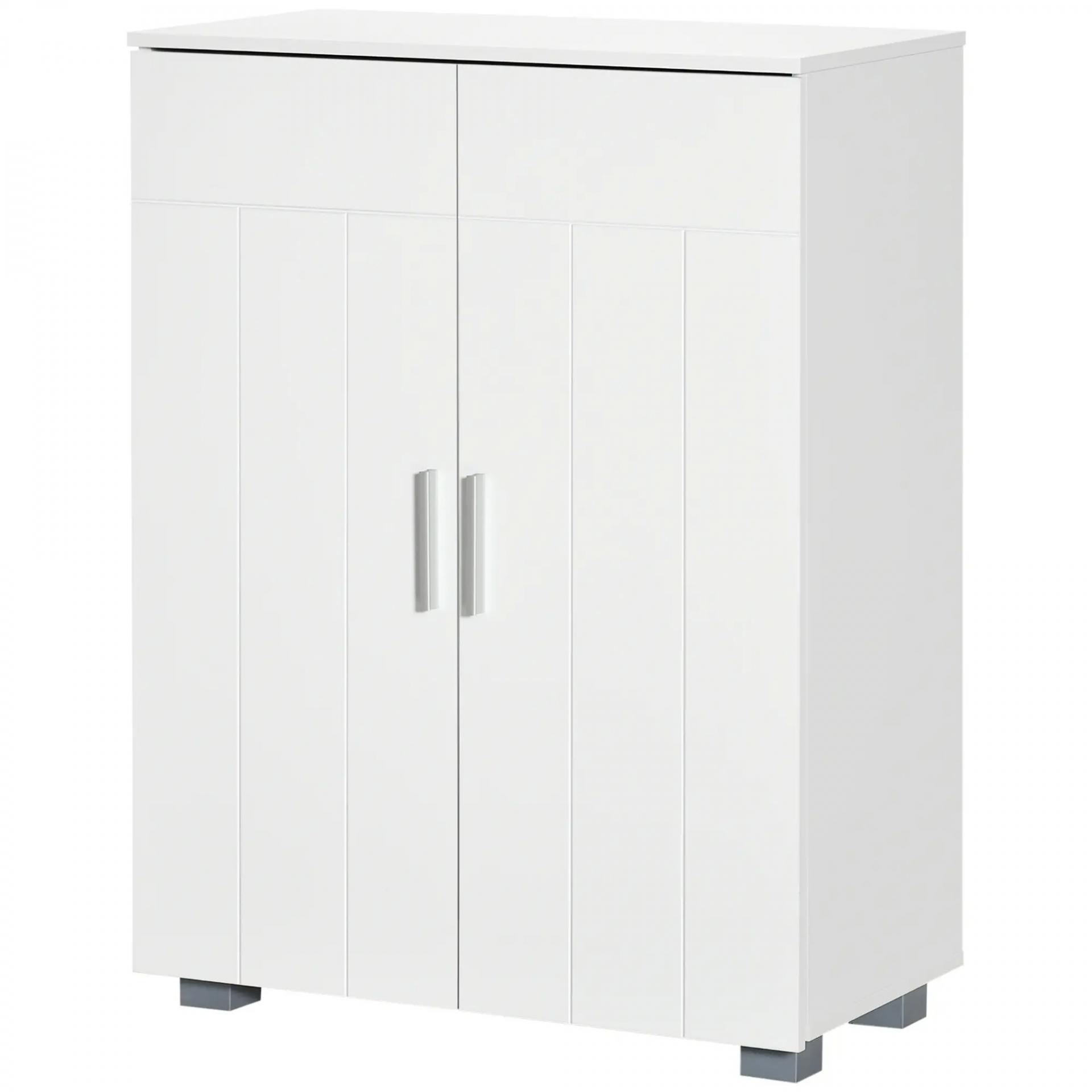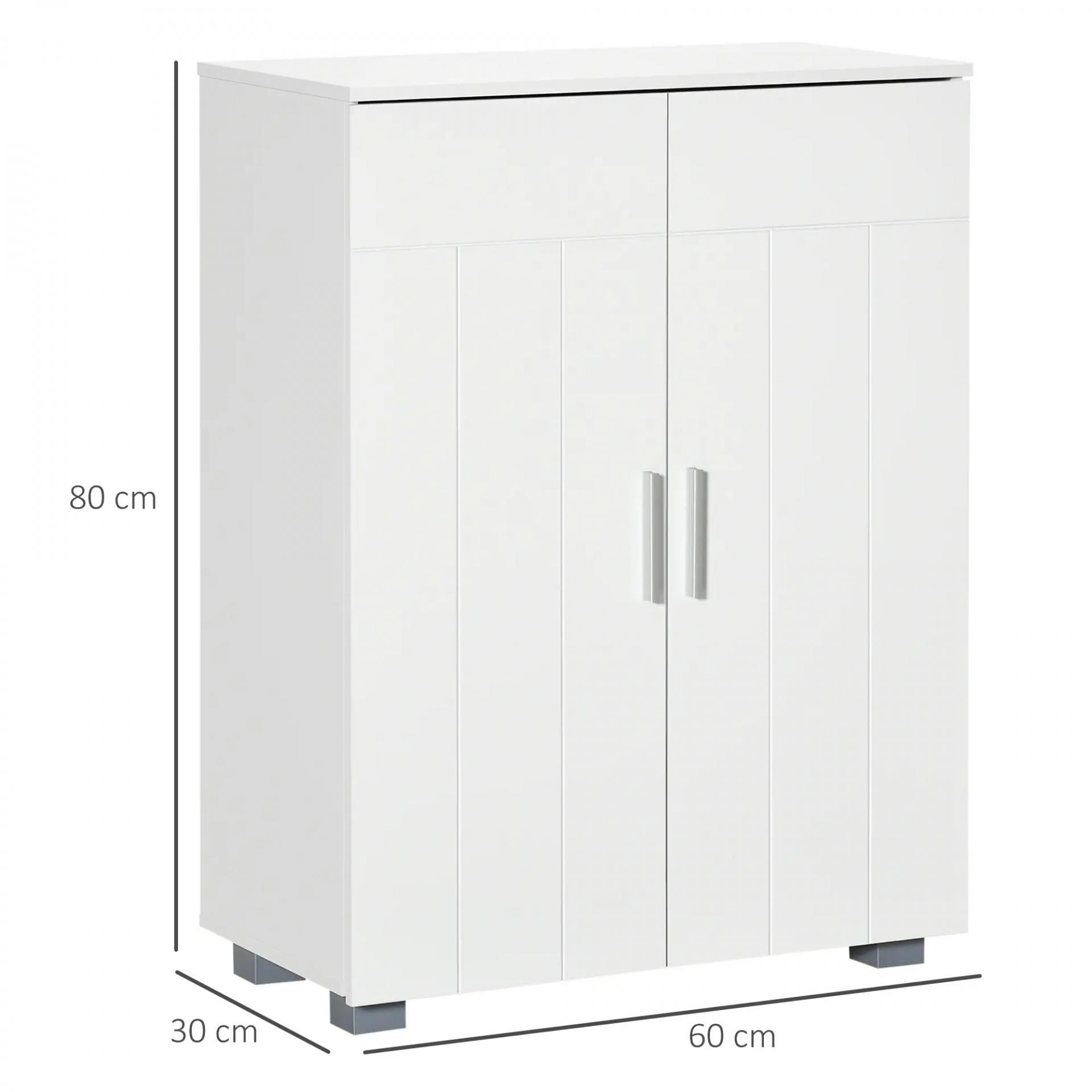 Armario de Baño con 2 Puertas y 2 Estantes Ajustables de 7 Niveles Mueble Auxiliar de Almacenaje para Salón Cocina Antivuelco 60x30x80 cm Blanco