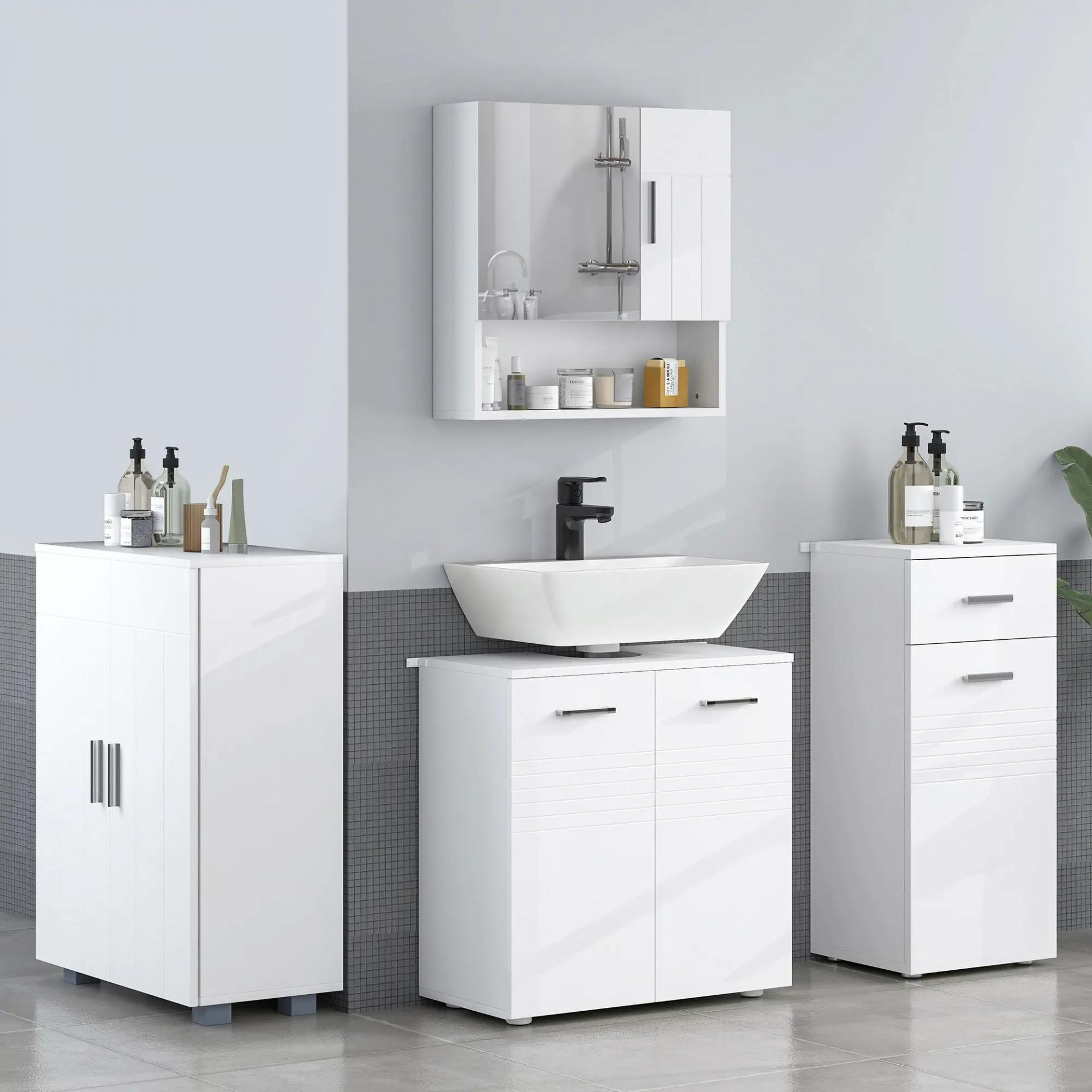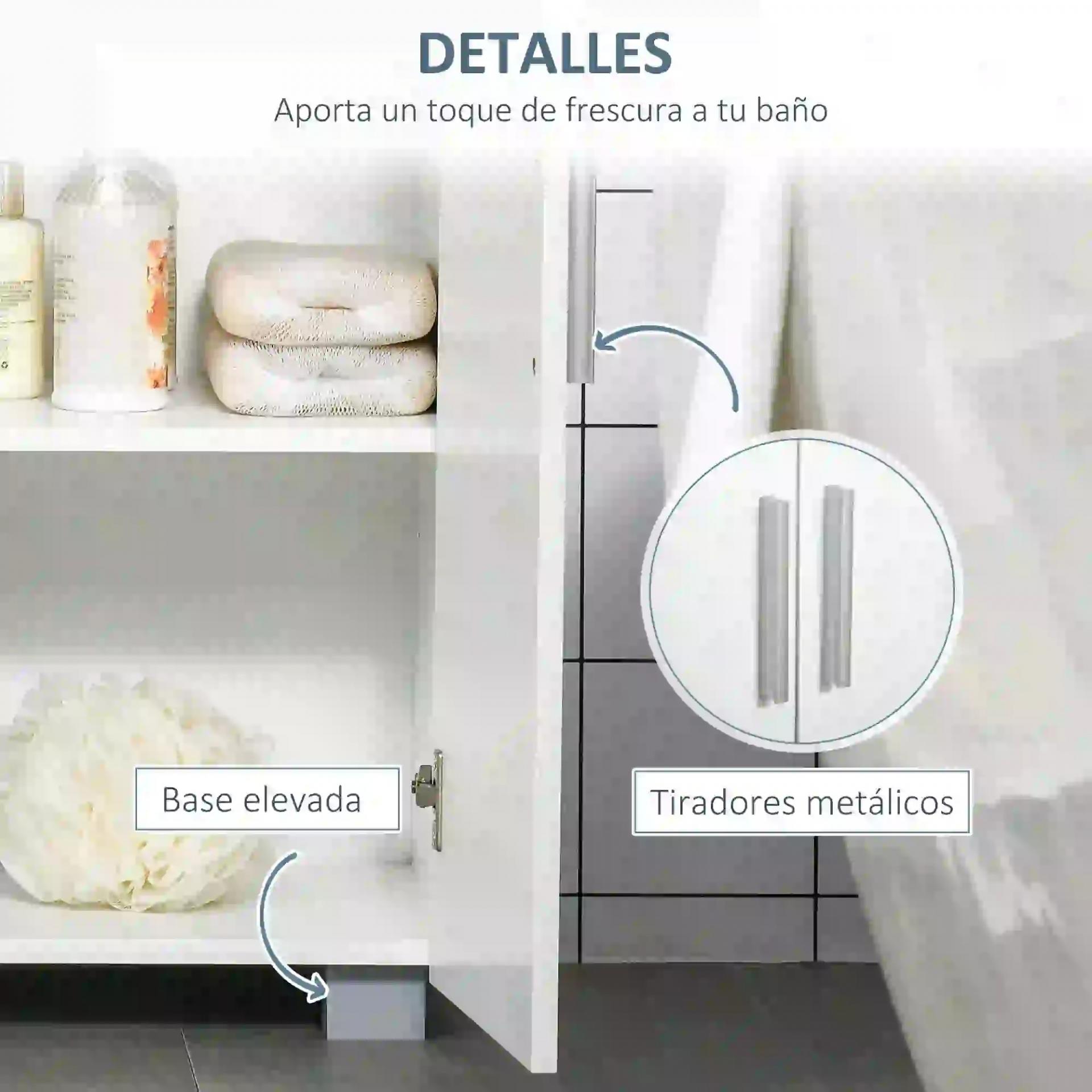 - RESISTENTE Y ESTABLE: Hecho de MDF, este gabinete de baño tiene una estructura estable y resistente. Incluye un antivuelco en la parte trasera para fijarlo a la pared, para mayor seguridad