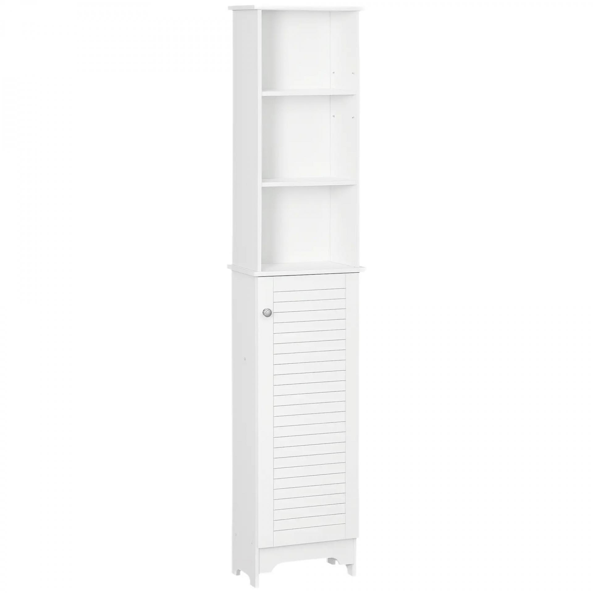 Armario Alto de Baño con Estantes Abiertos y Balda Interior Mueble Auxiliar de Almacenaje 34x20x165 cm Blanco