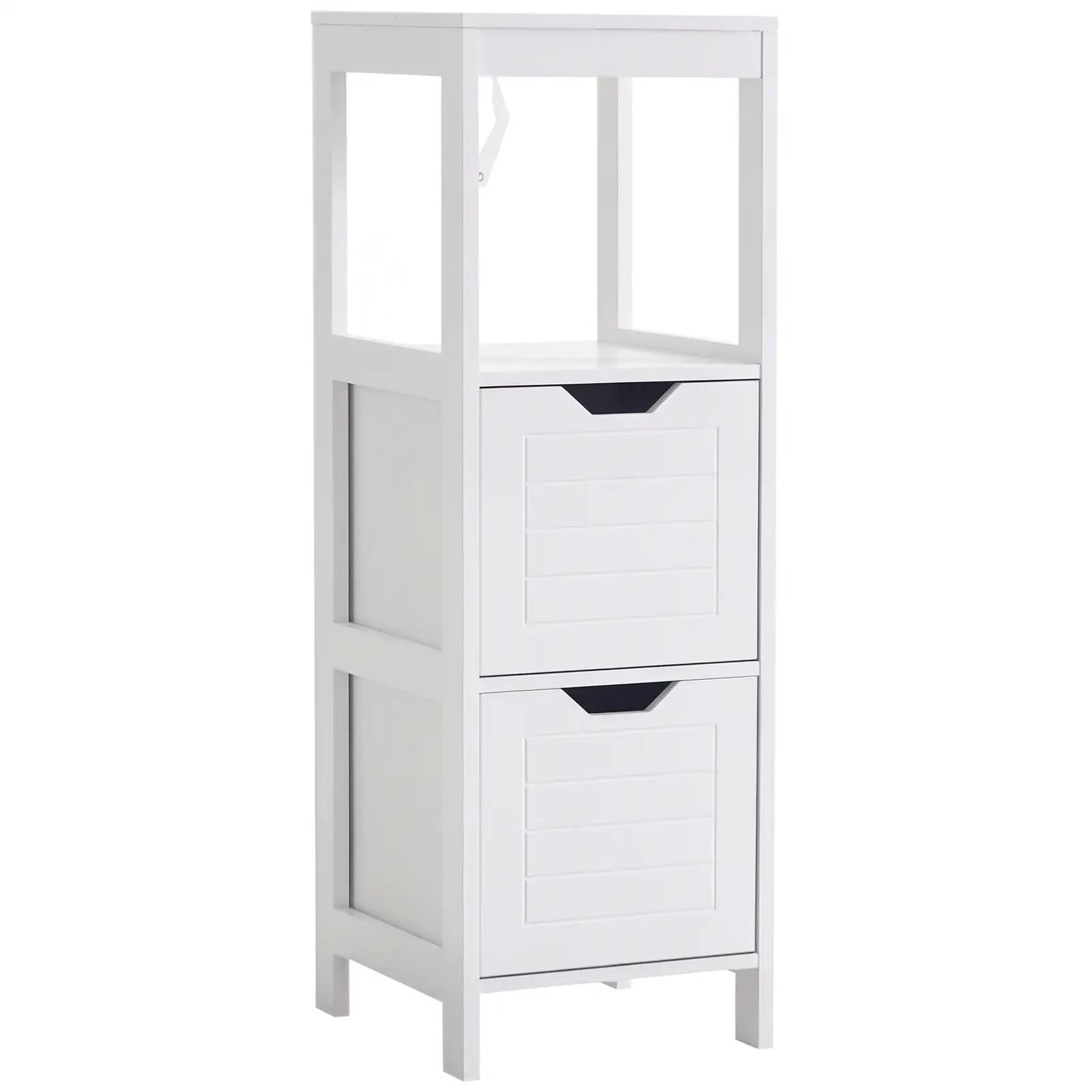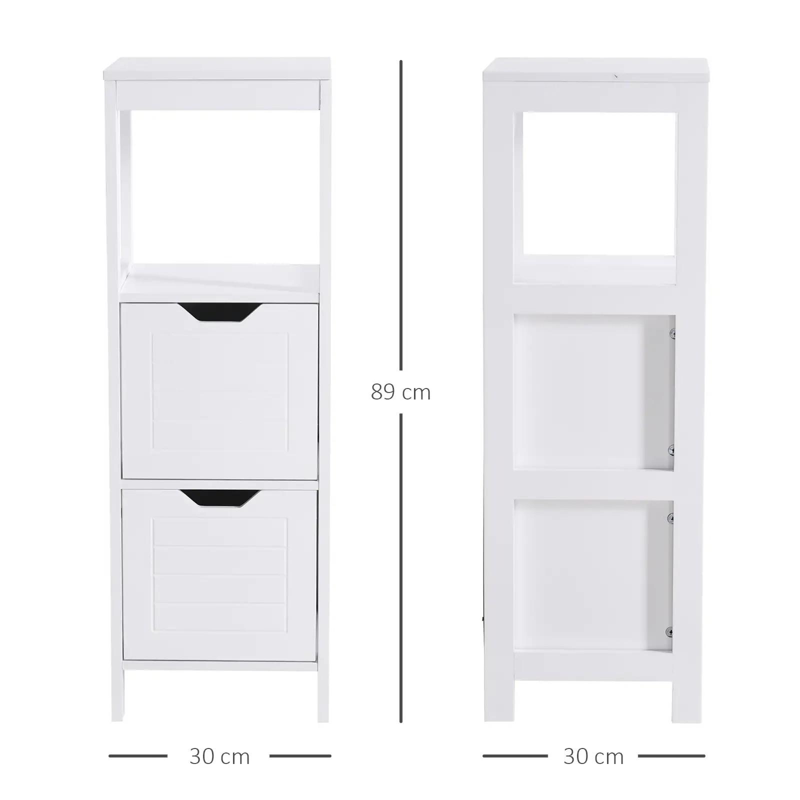 Armario de Baño Gabinete Multifuncional con Estante Abierto 2 Cajones de Almacenaje Diseño Antivuelco 30x30x89 cm Blanco