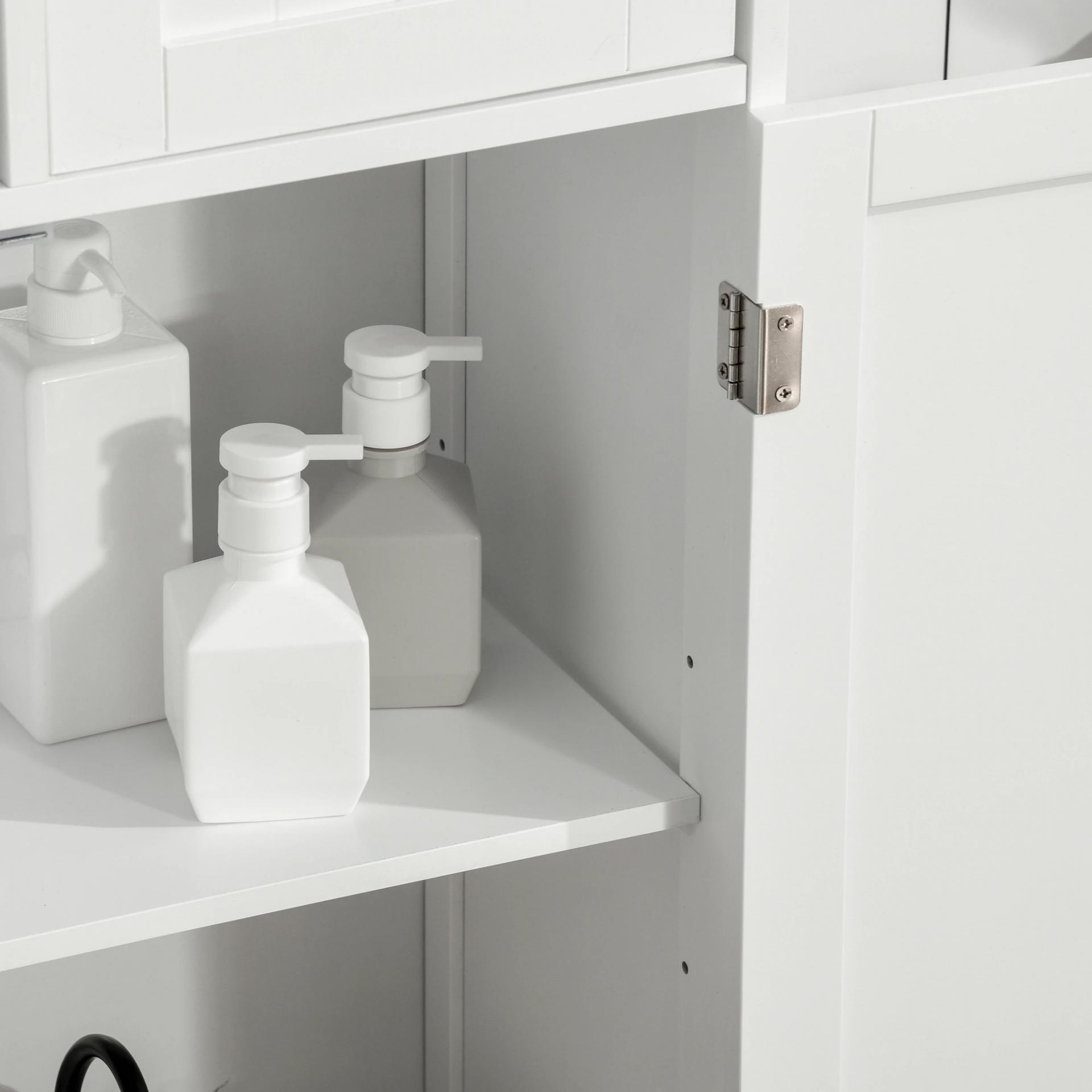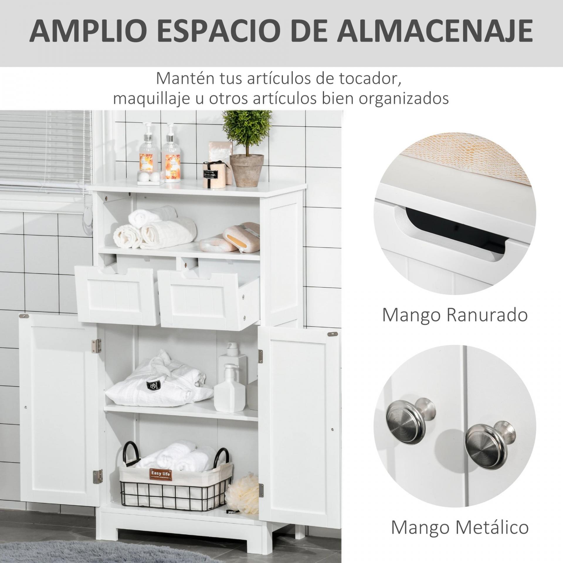 Armario de Baño con 2 Puertas Estante Ajustable 2 Cajones y Compartimento Abierto Mueble Auxiliar de Almacenaje para Salón Cocina 60x30x108,8 cm Blanco