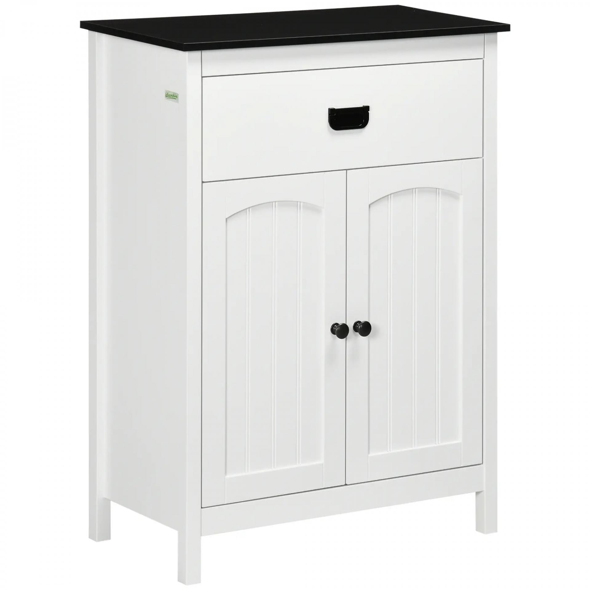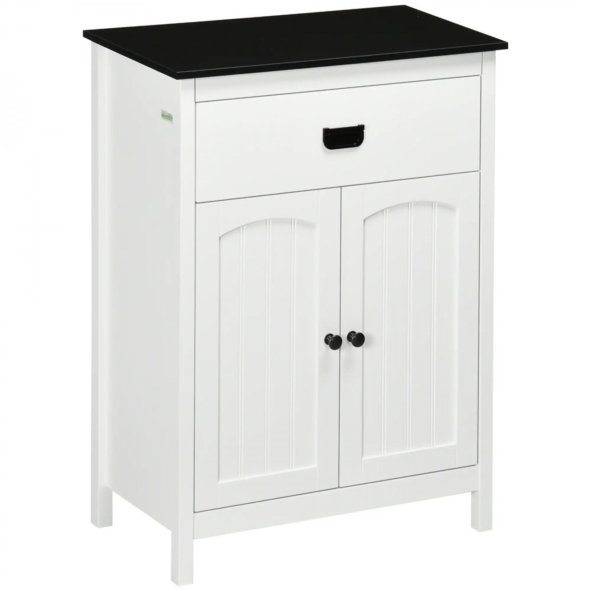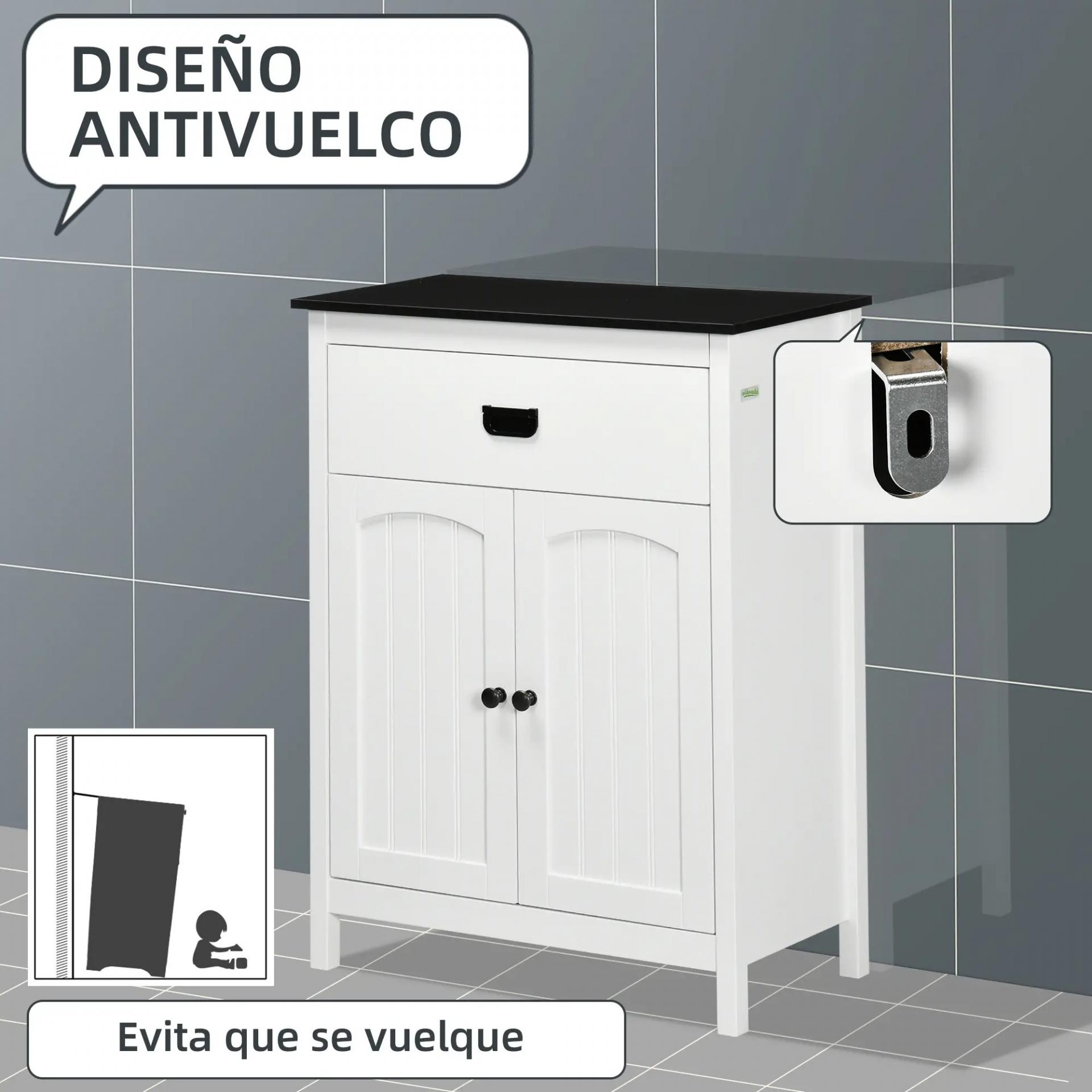 Armario Auxiliar de Baño Estilo Moderno con 1 Cajón 2 Puertas y Estante para Lavabo Ducha 60x30x80 cm Blanco.