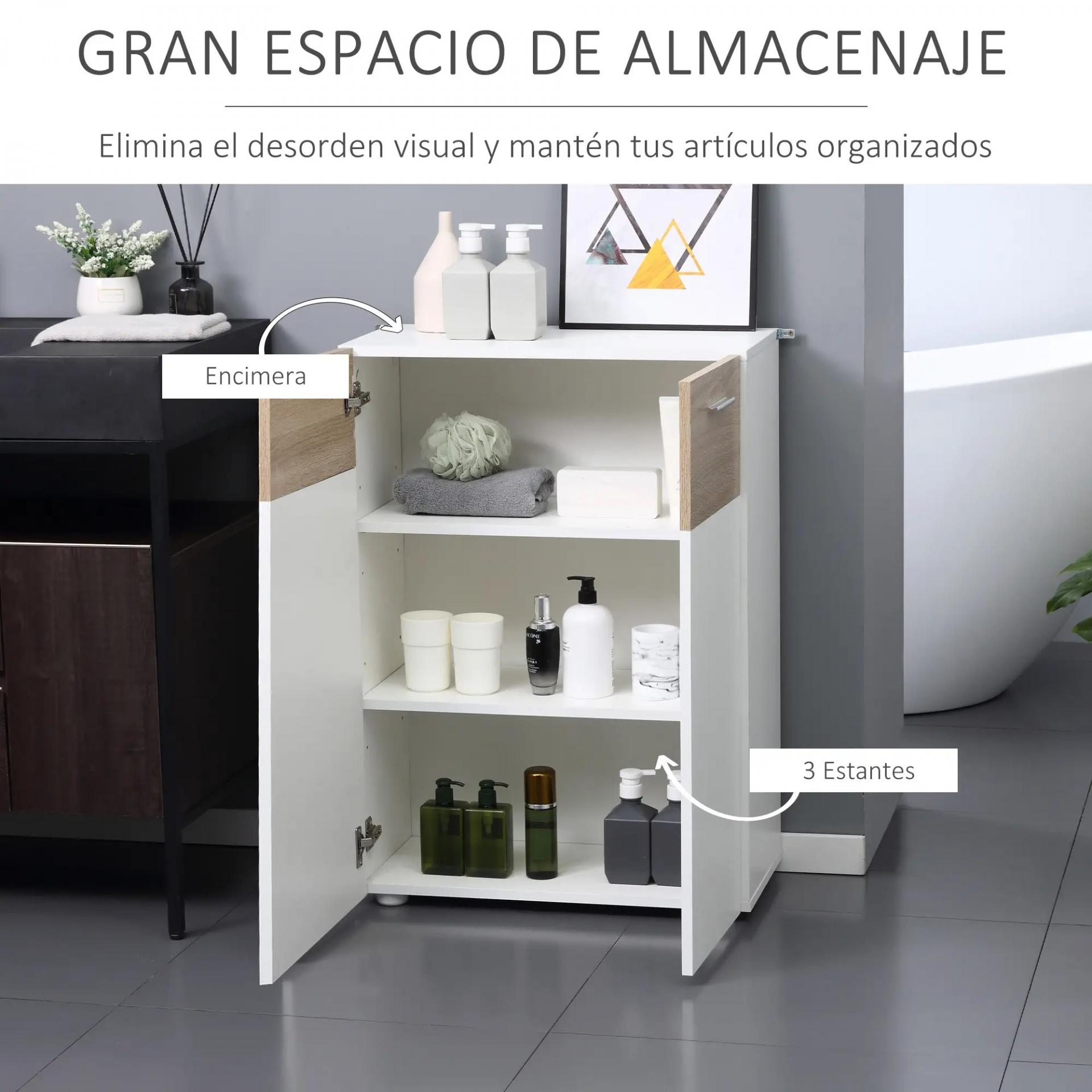 - AMPLIO ESPACIO: Compuesto por una encimera y muebles con doble puerta y 3 estantes interiores con altura regulable, cada uno capaz de soportar hasta 3 kg