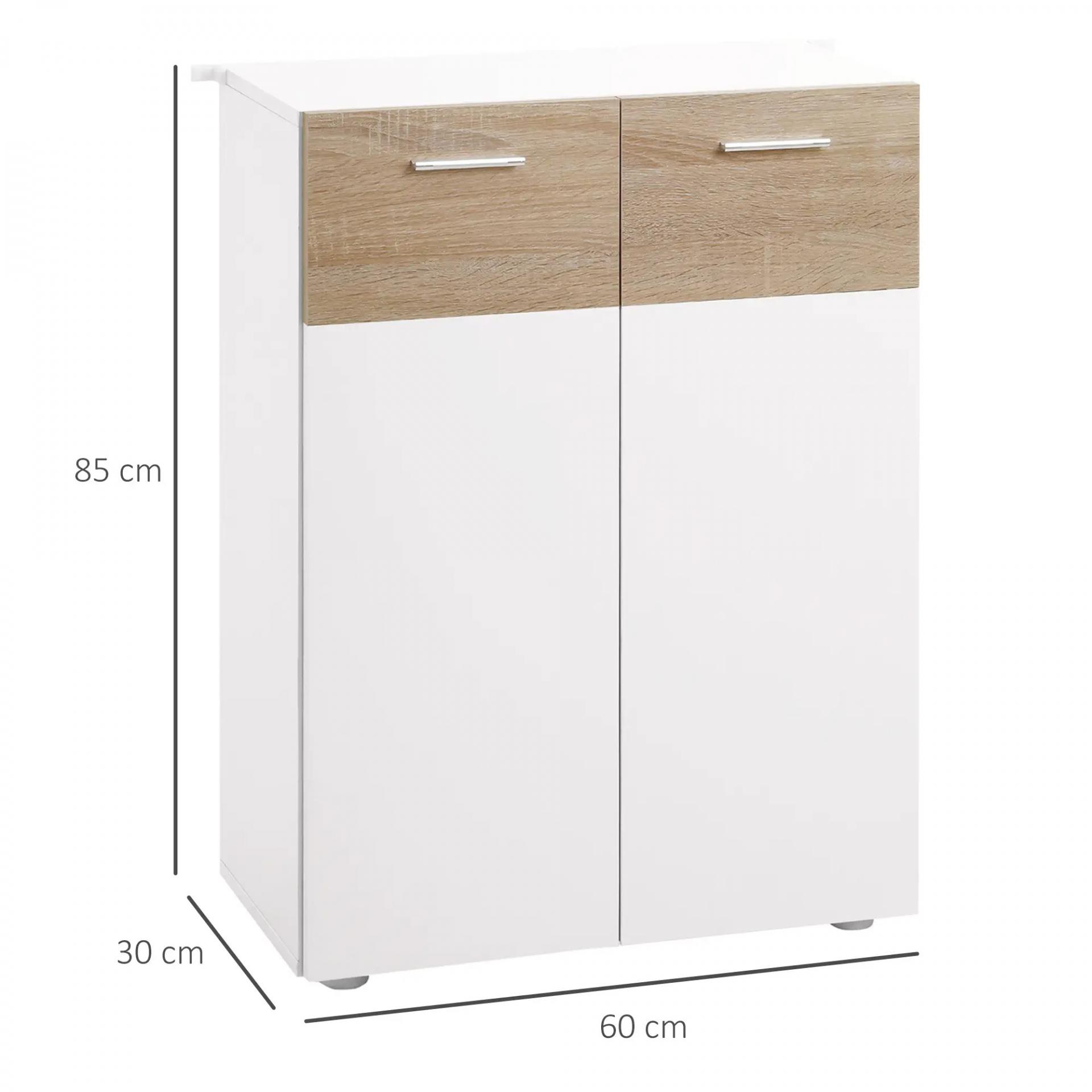 Armario de Suelo para Baño con 2 Puertas y Estantes Interiores Ajustables Mueble Auxiliar de Madera Multiusos para Salón Cocina Comedor 60x30x85 cm Blanco