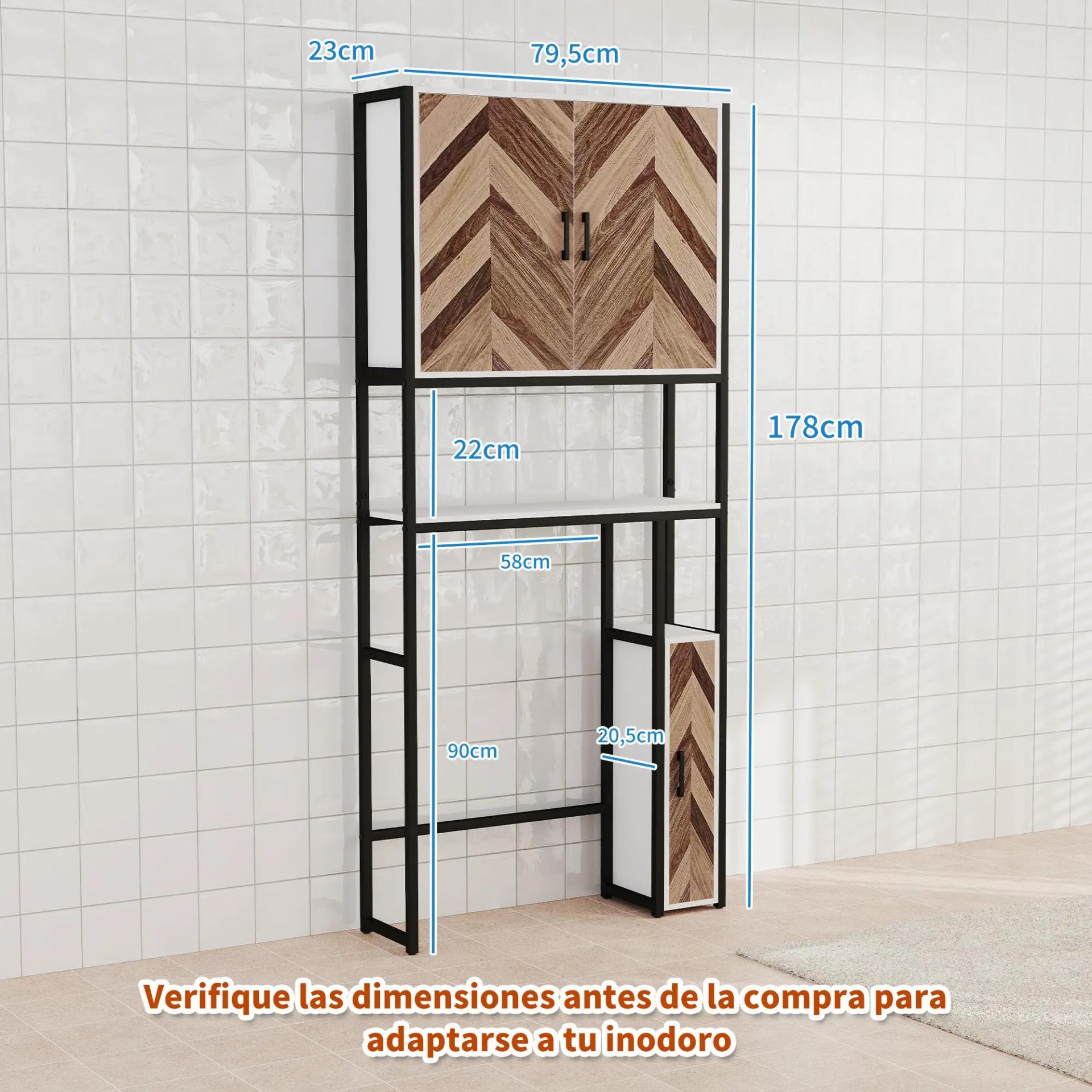 - ESTRUCTURA RESISTENTE: Este mueble sobre inodoro está fabricado con una estructura metálica y melamina de madera, garantizando resistencia y durabilidad. Además, incluye un antivuelco y pies ajustables para mayor estabilidad y seguridad
