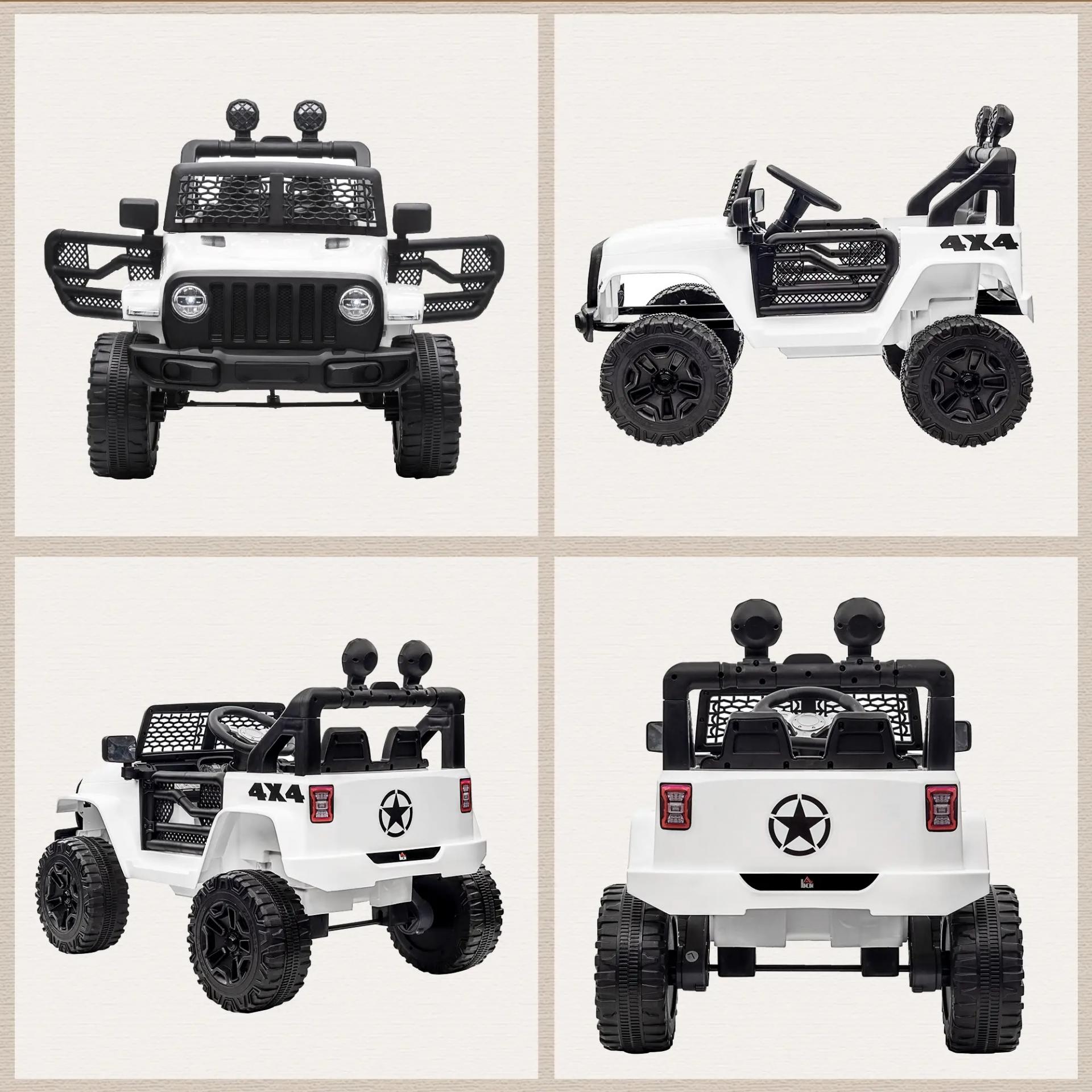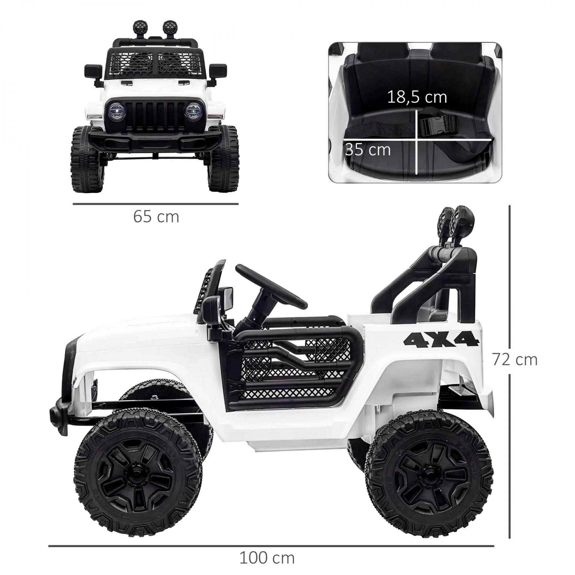 Coche Eléctrico para Niños de +3 Años Vehículo Todoterreno de Batería 12V con Control Remoto 100x65x72 cm Blanco