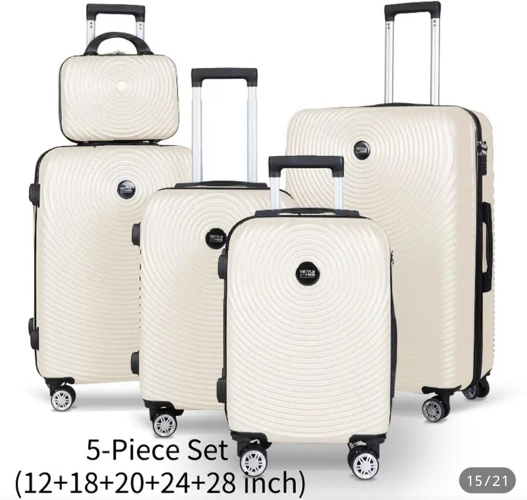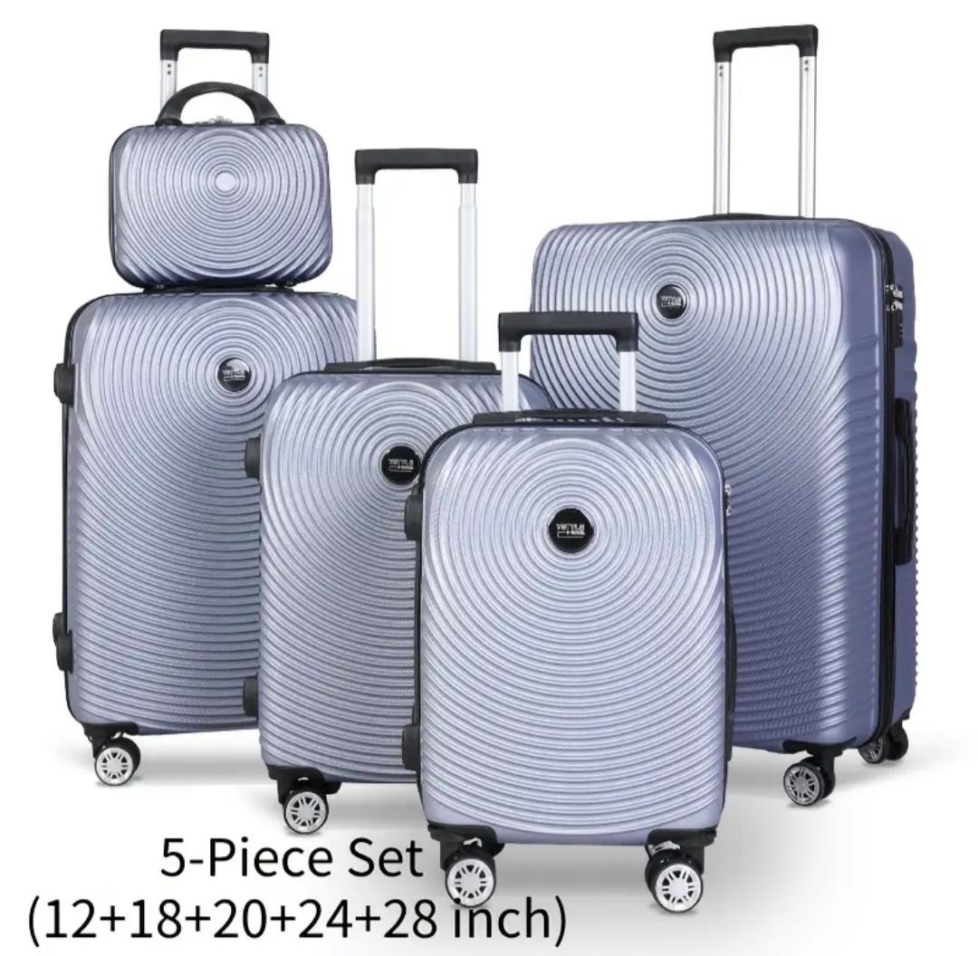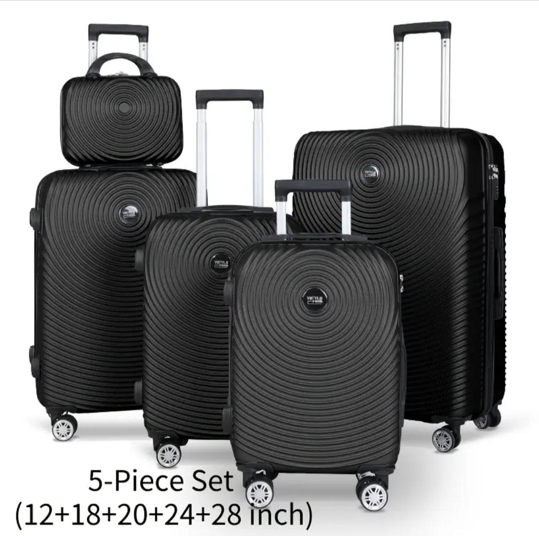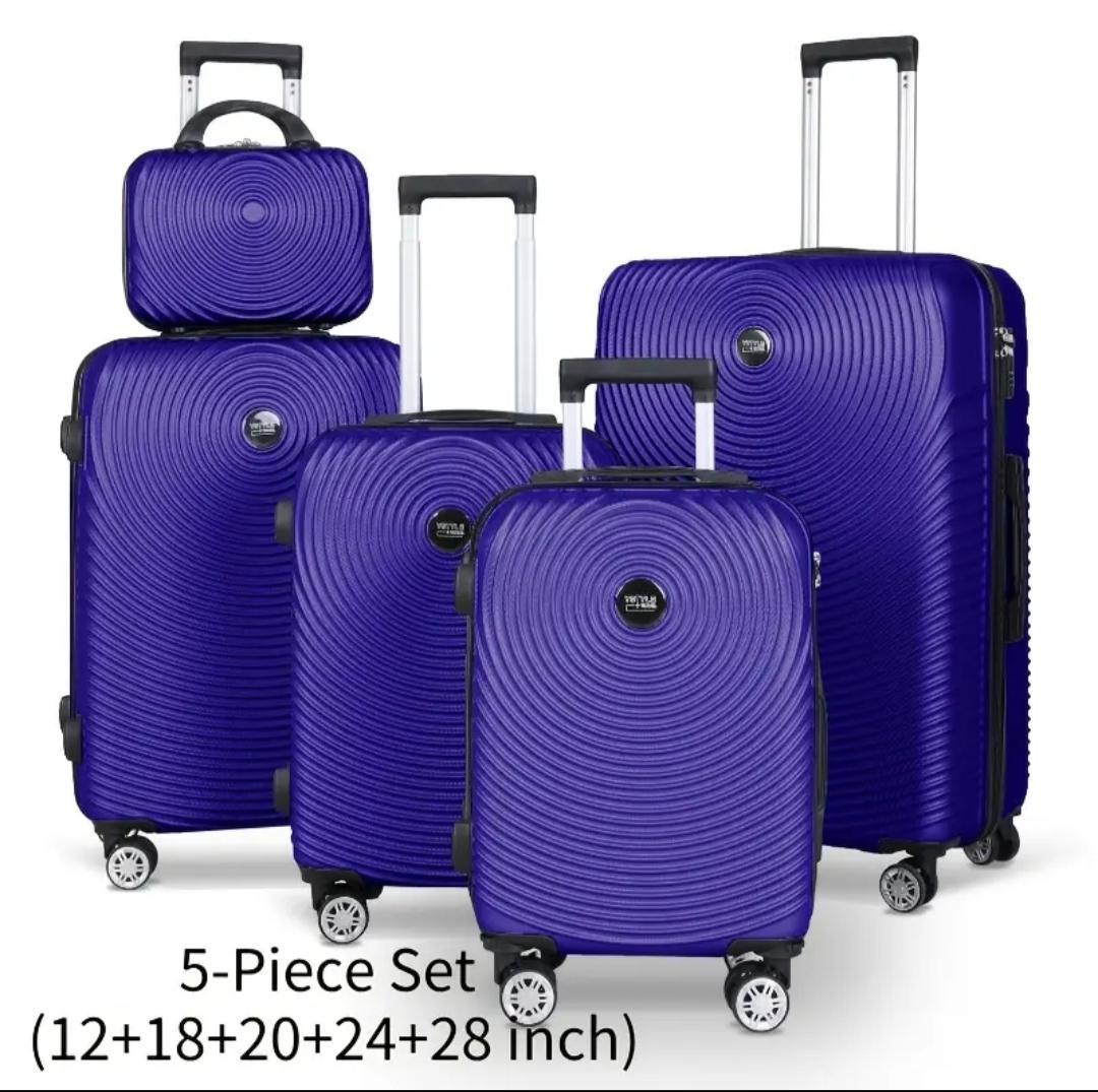 Conjunto de cinco maletas de diferentes tamaños, perfectas para cualquier tipo de viaje.