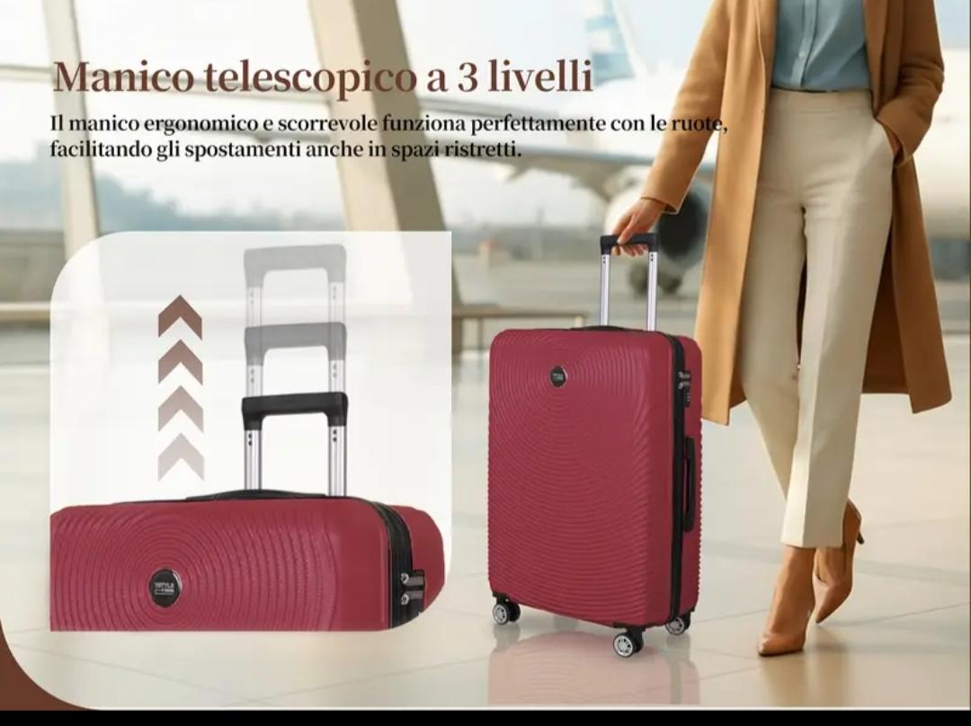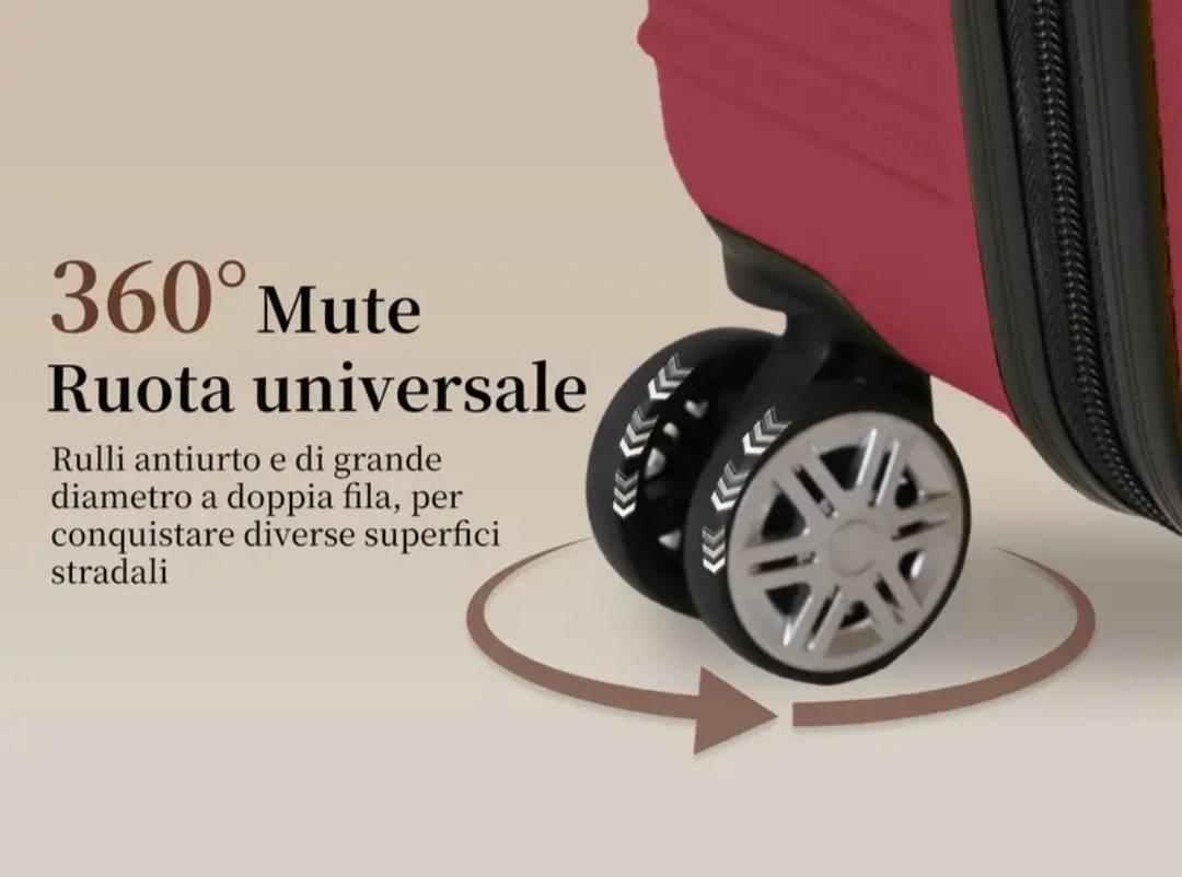 - Cada maleta cuenta con ruedas giratorias y asa extensible.