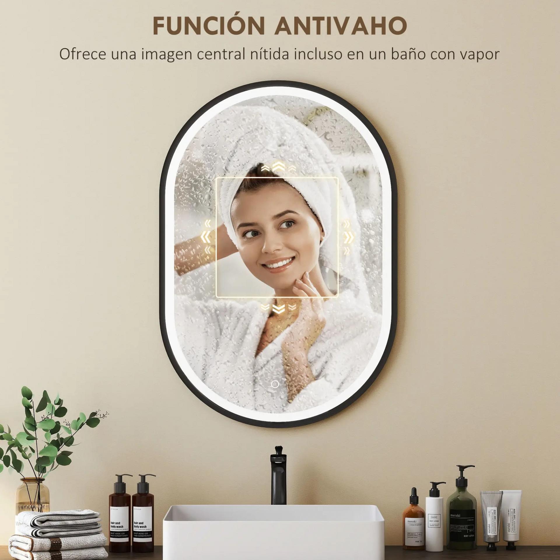 - DISEÑO OVAL MODERNO: El espejo de baño con LED presenta un elegante formato ovalado con marco de aluminio negro, aportando un estilo contemporáneo y sofisticado. Ideal para quienes buscan funcionalidad y diseño en un mismo elemento decorativo