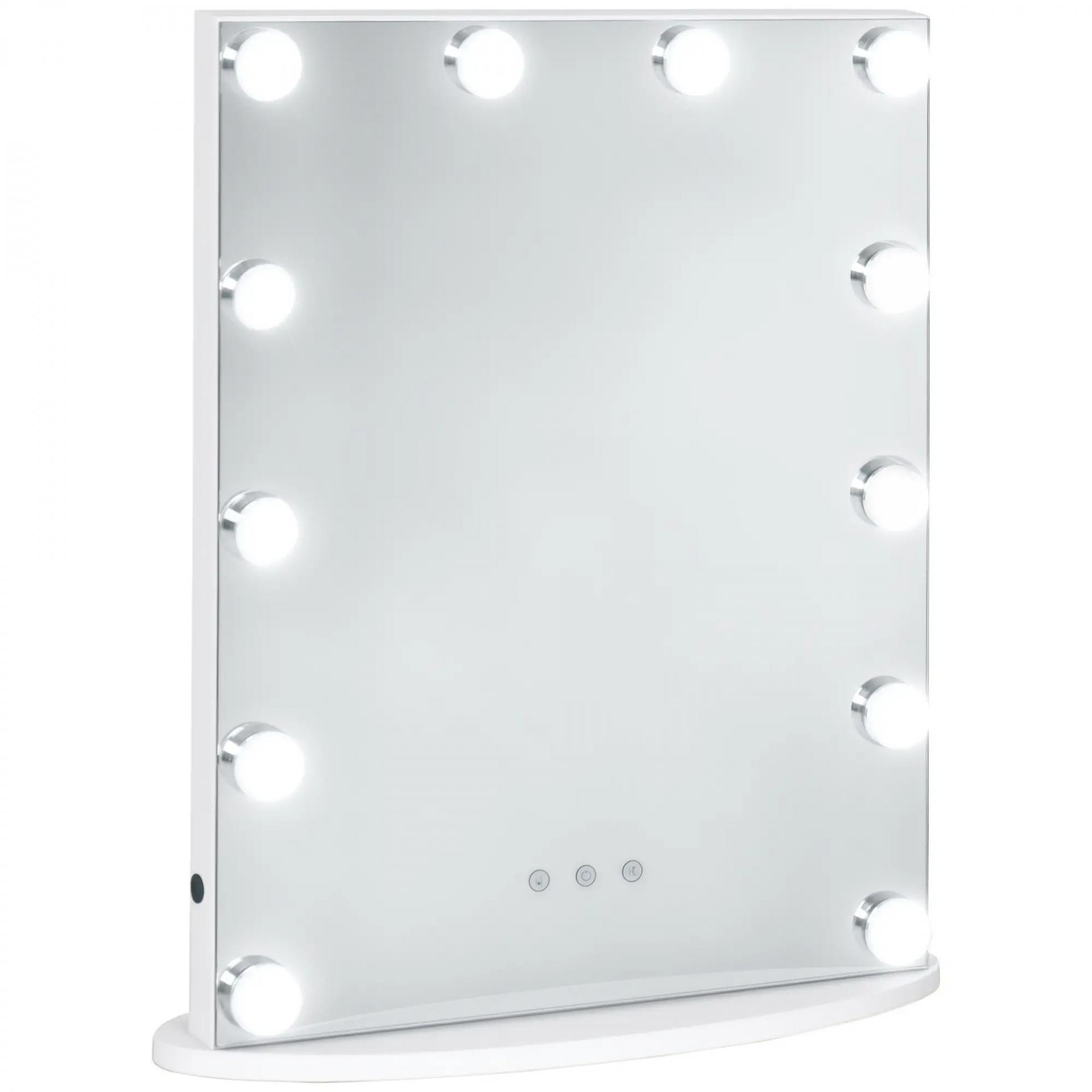Espejo de Maquillaje Estilo Hollywood Espejo de Tocador Táctil con 12 Luces LED Ajustables 41,5x13,5x51 cm Blanco