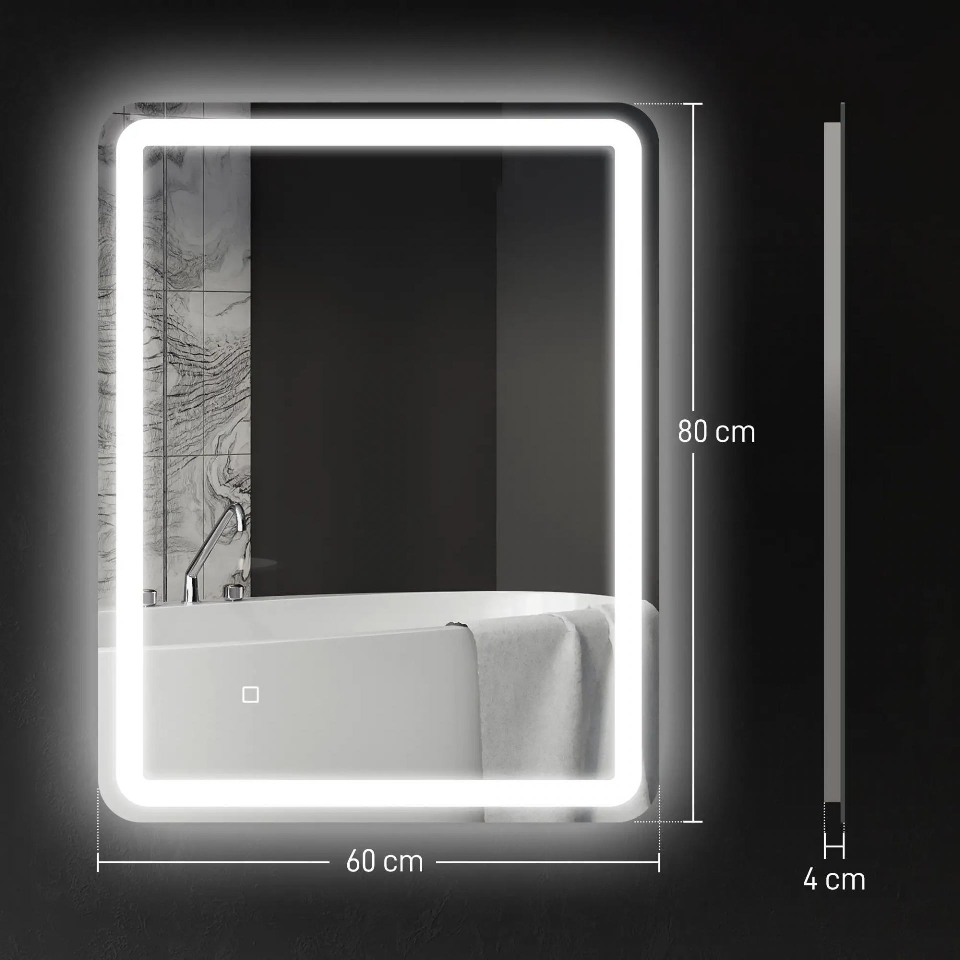 MEDIDAS TOTALES: 60x4x80 cm (LxANxAL). Nota: El espejo debe ser conectado a la red eléctrica para funcionar. No necesita montaje, solo colócalo en la pared vertical u horizontalmente con tornillos y tres ganchos transversales fáciles de colgar