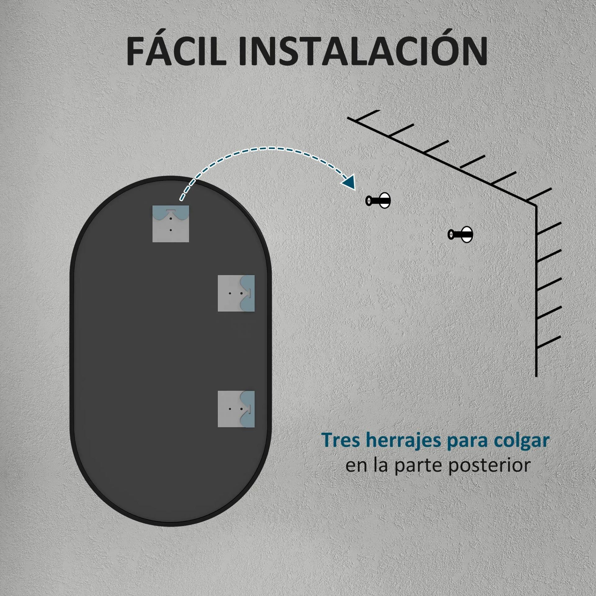 - SEGURIDAD E INSTALACIÓN FÁCIL: Este espejo de baño cuenta con una lámina a prueba de explosiones que aporta mayor seguridad en el manejo y transporte. Sus ganchos metálicos traseros permiten una instalación rápida y sencilla en cualquier espacio