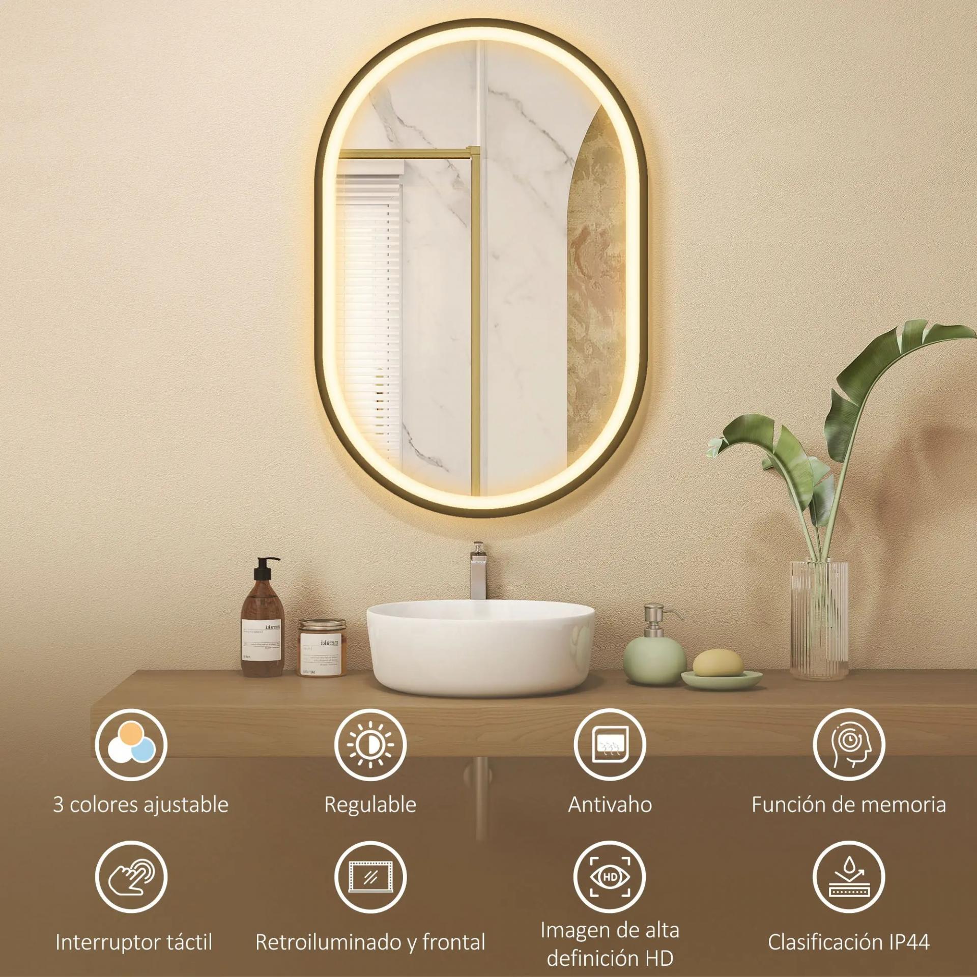 - DISEÑO OVAL MODERNO: El espejo de baño con LED presenta un elegante formato ovalado con marco de aluminio negro, aportando un estilo contemporáneo y sofisticado. Ideal para quienes buscan funcionalidad y diseño en un mismo elemento decorativo