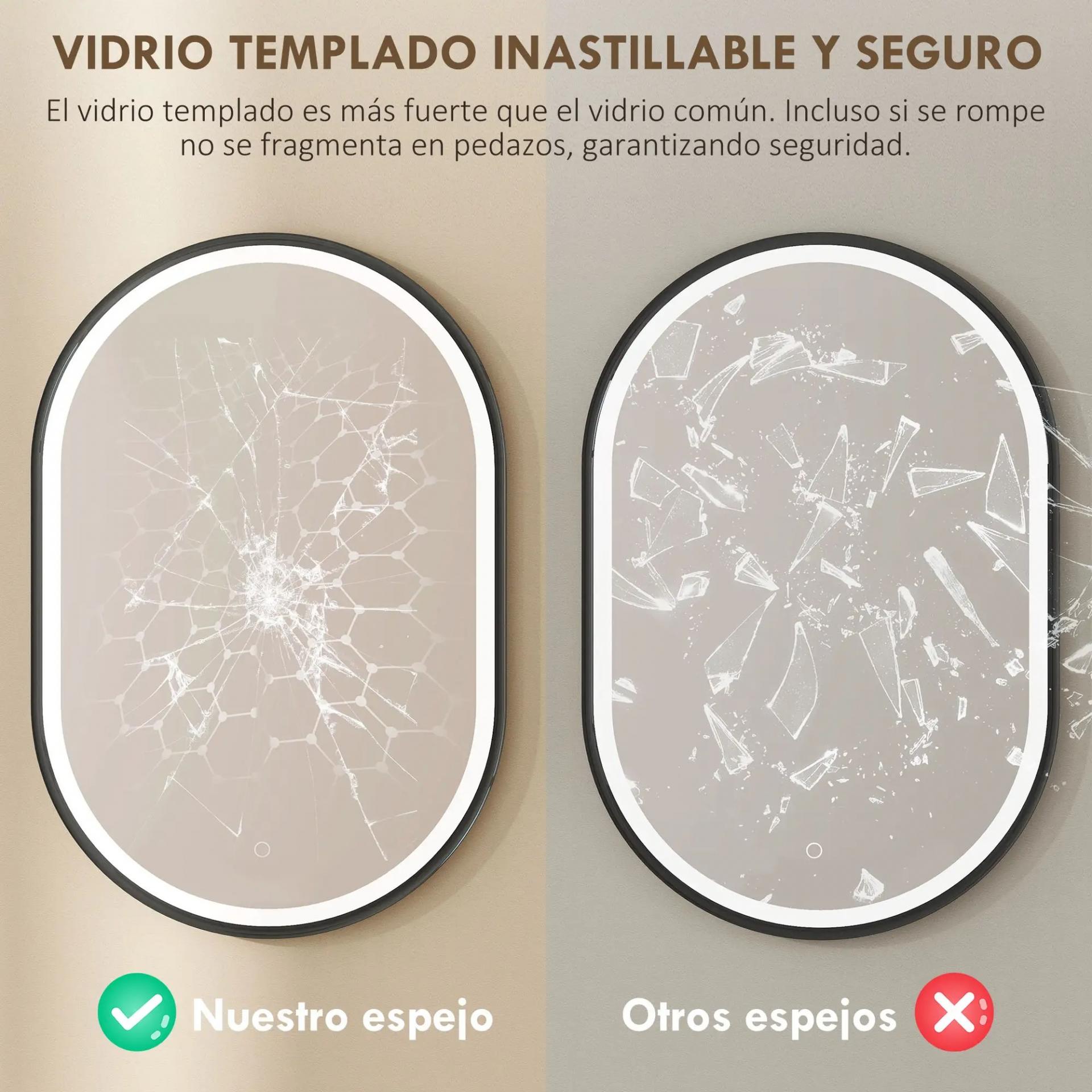 - ESPEJO HD CON CONTROL TÁCTIL: Fabricado en vidrio templado de 4 mm resistente a roturas y con certificación IP44, este espejo de baño con luz garantiza seguridad y claridad. Su panel táctil permite ajustar fácilmente el brillo y cambiar el color de la luz