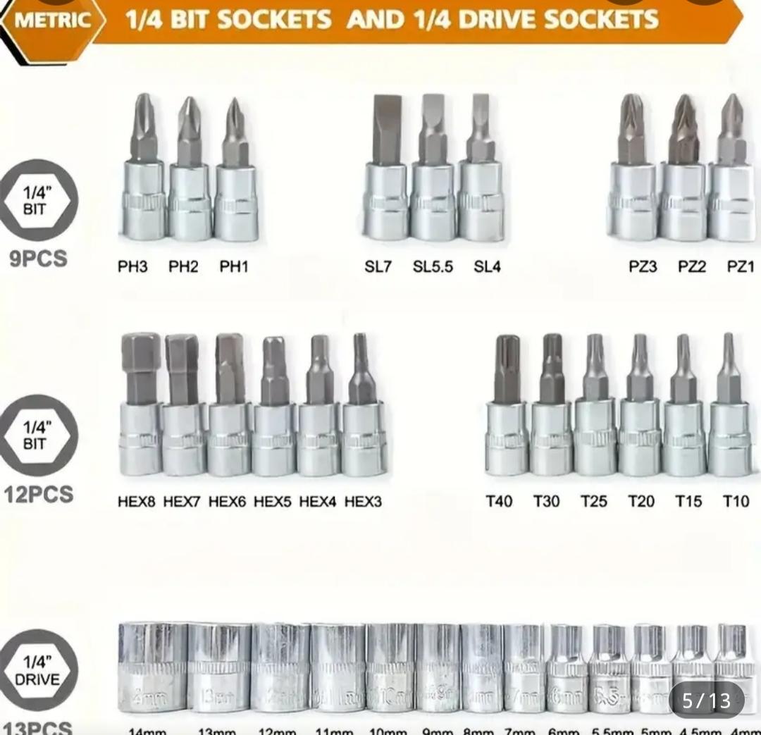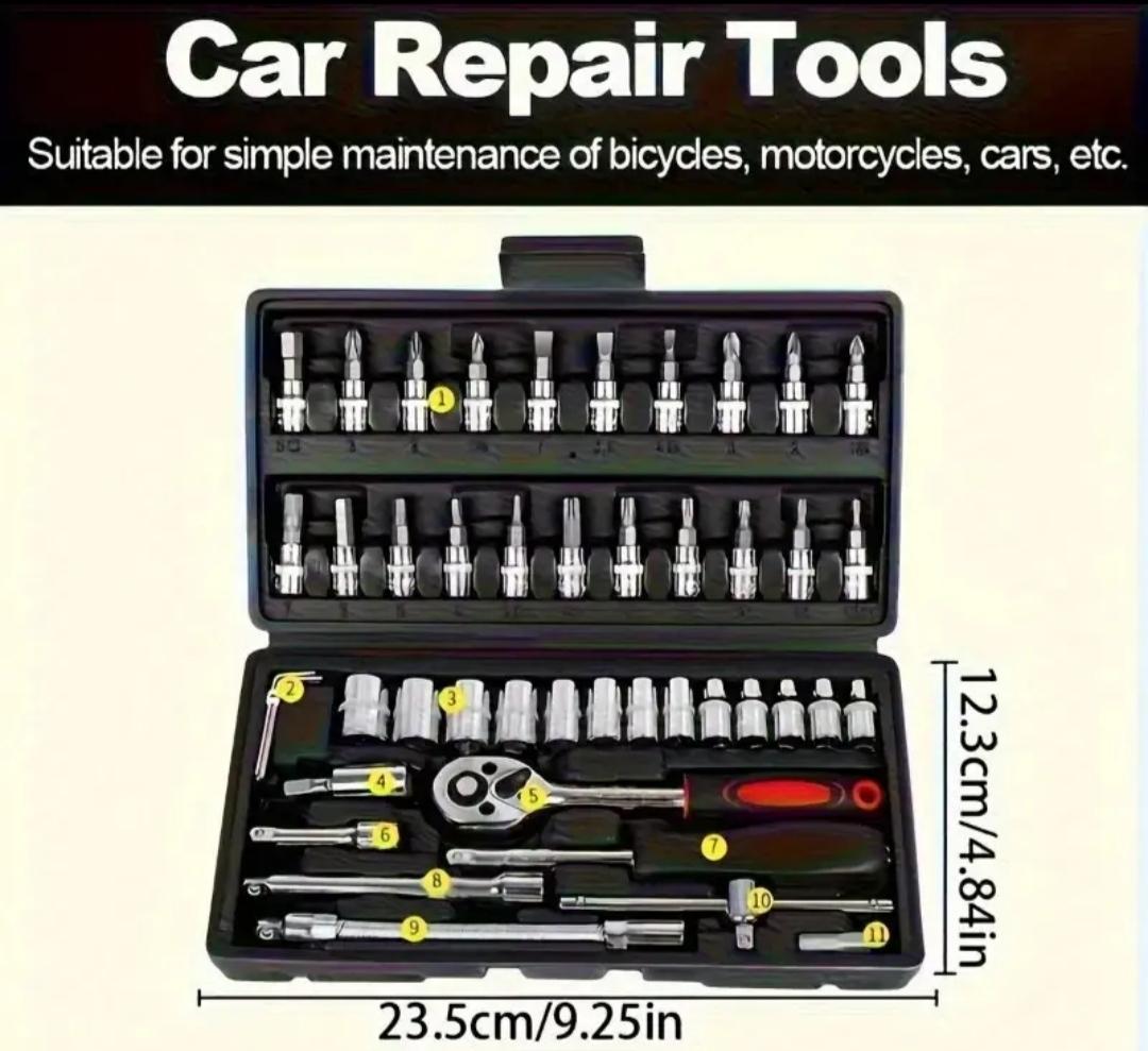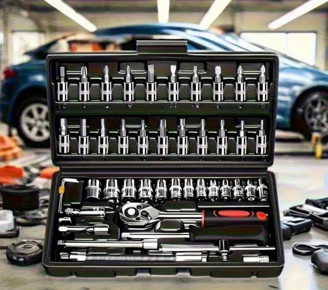 Set de 46 piezas de llaves de carraca y accesorios.