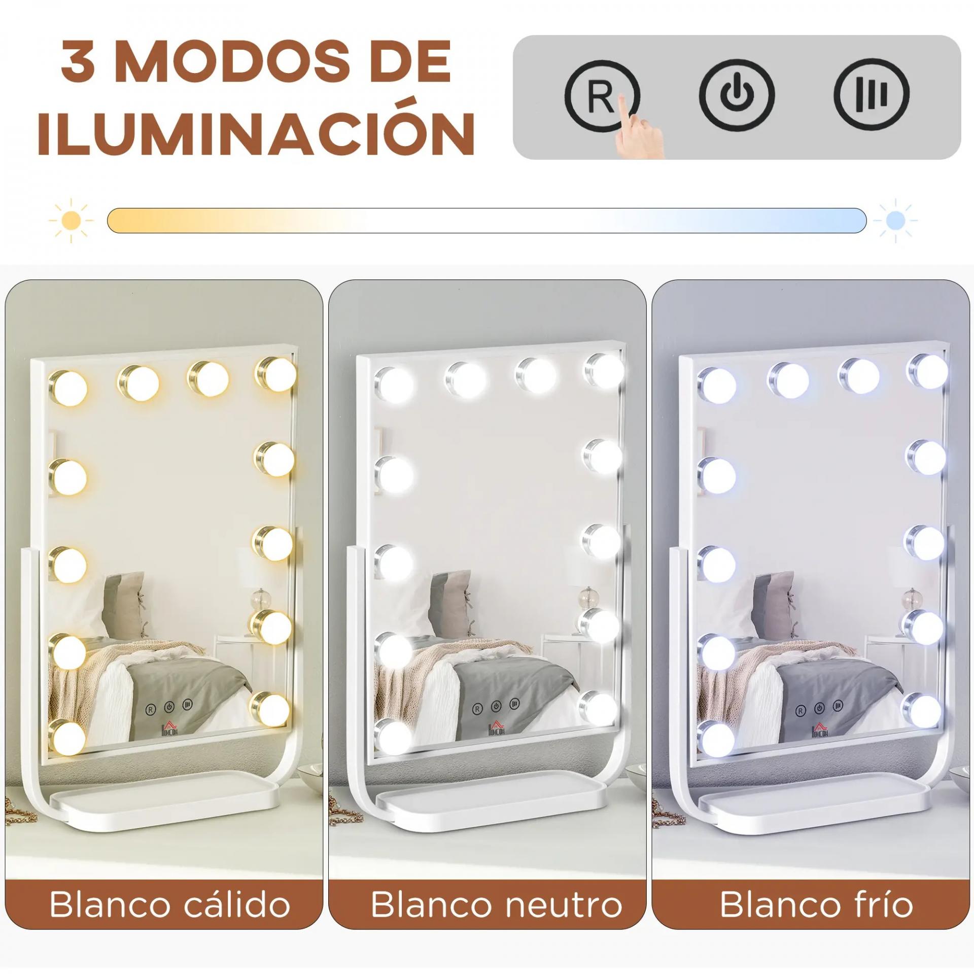 - SELECCIÓN MEMORIZADA: Al encender el espejo de tocador estilo Hollywood encontrarás la configuración de luz de tu último uso y podrás ahorrar así el tiempo de tener que ajustarla de nuevo