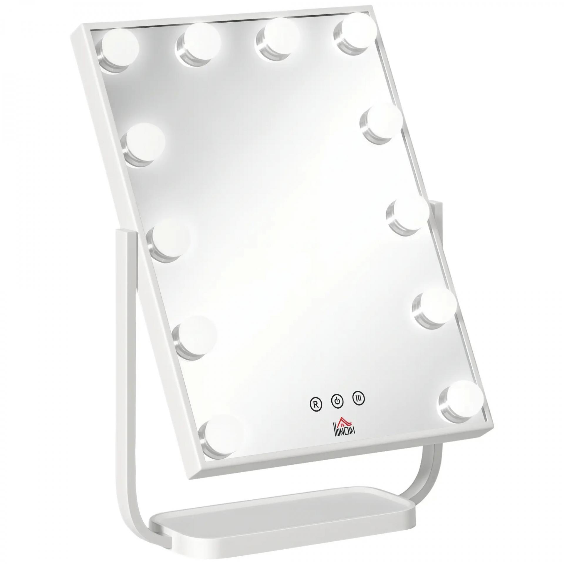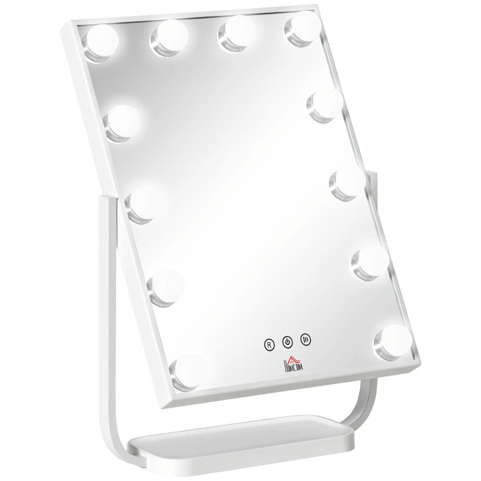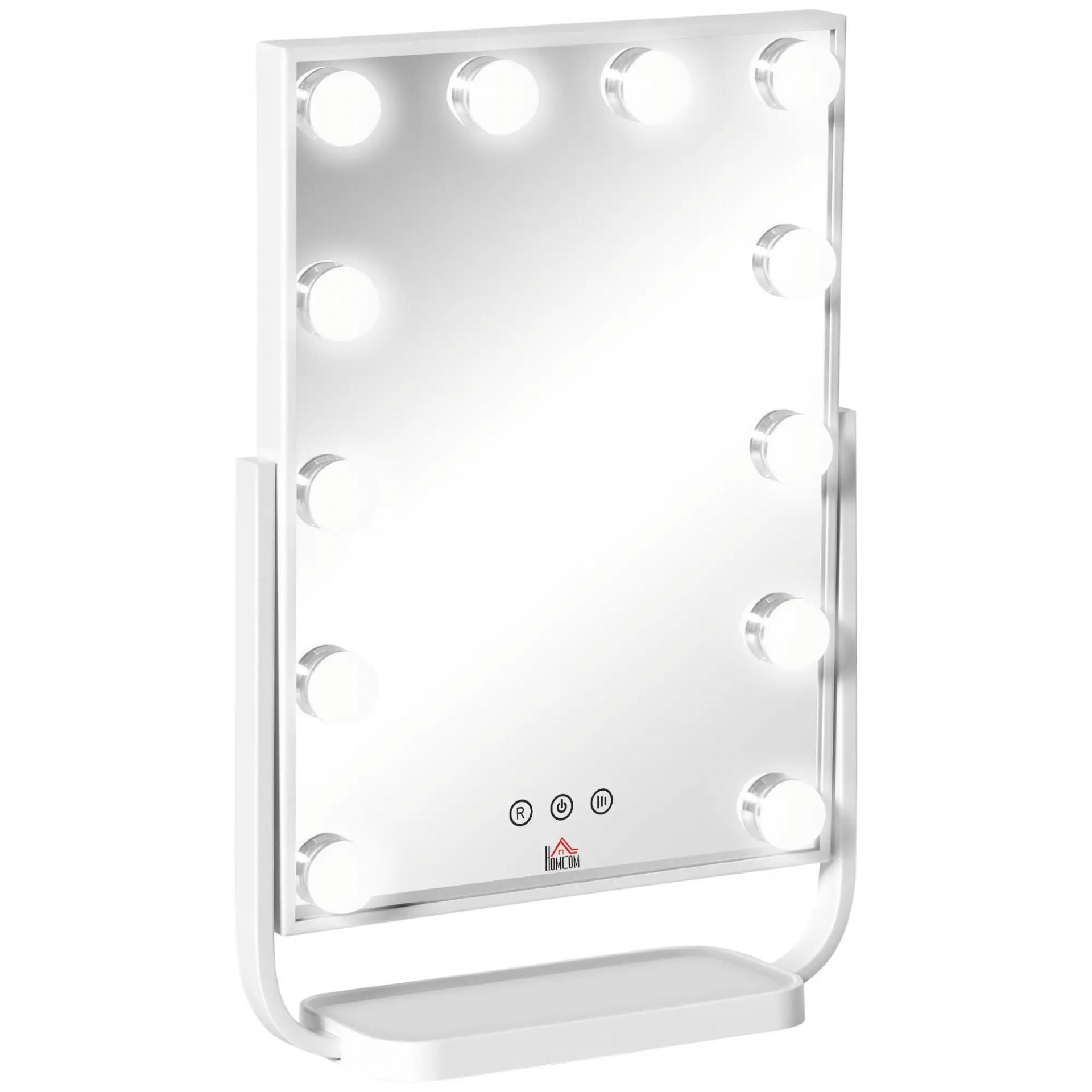 Espejo de Maquillaje con Luz Espejo Hollywood de Mesa con 12 LED 3 Modos y Luz Ajustable Pantalla Táctil y Función de Memoria para Dormitorio Baño 32,8x11x47,4 cm Blanco