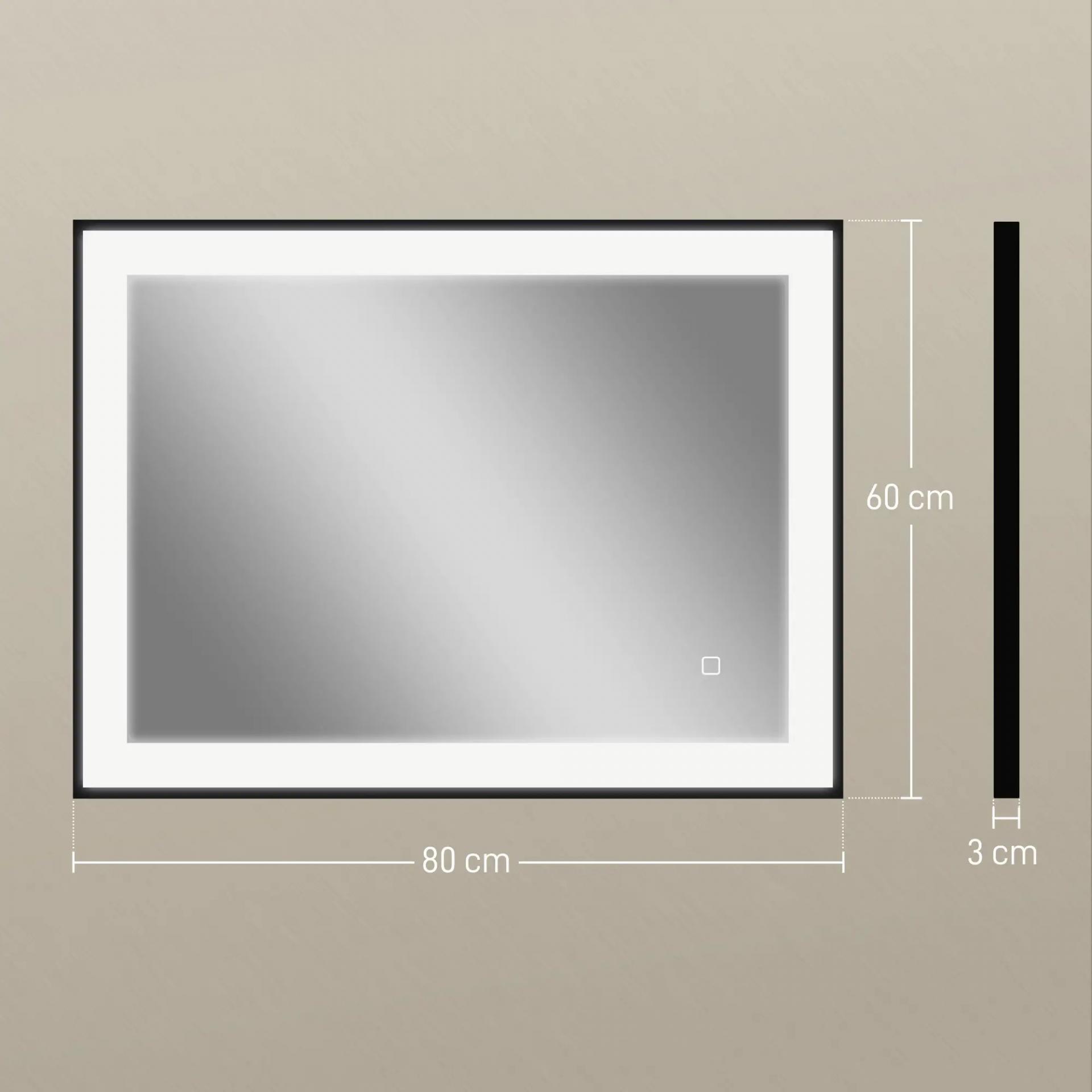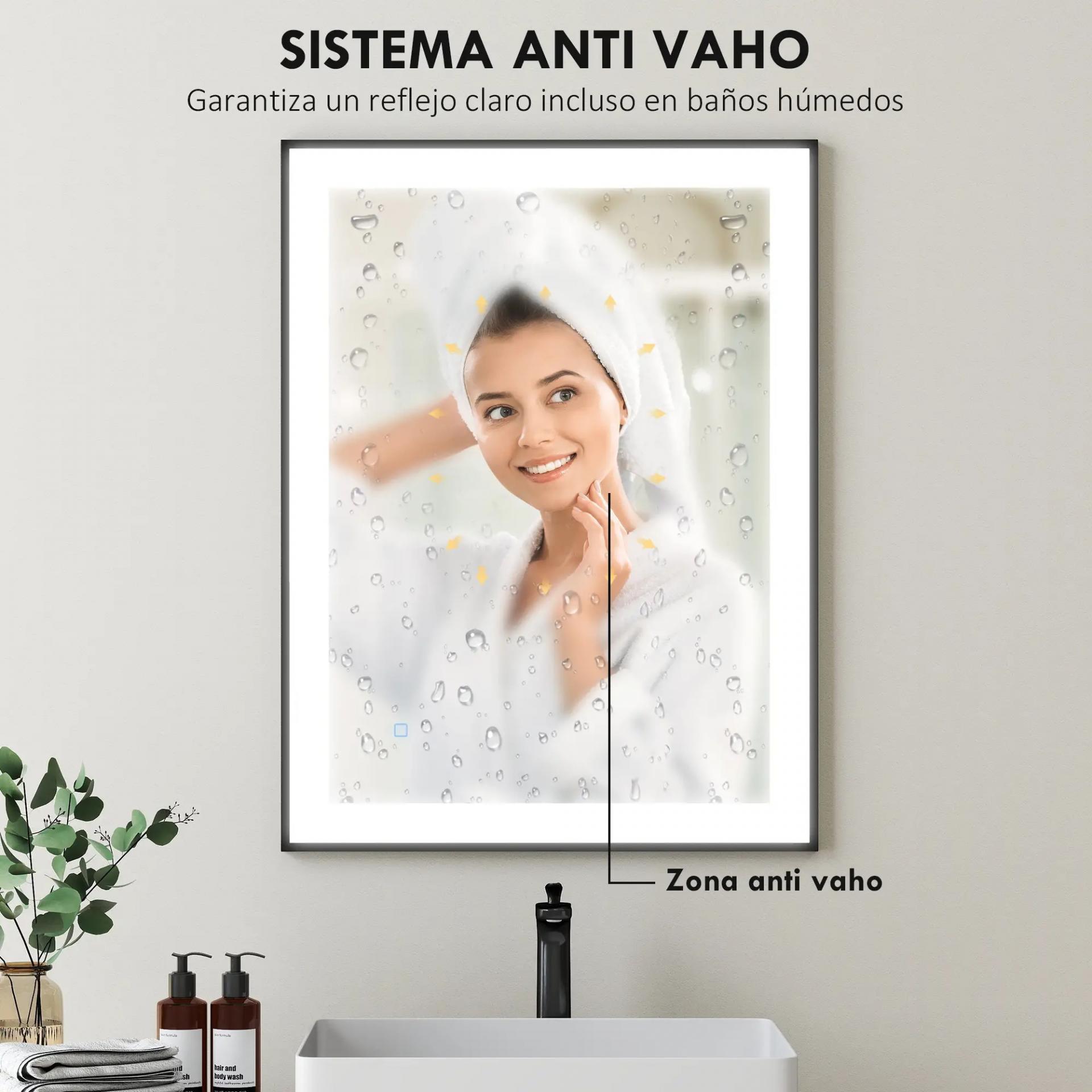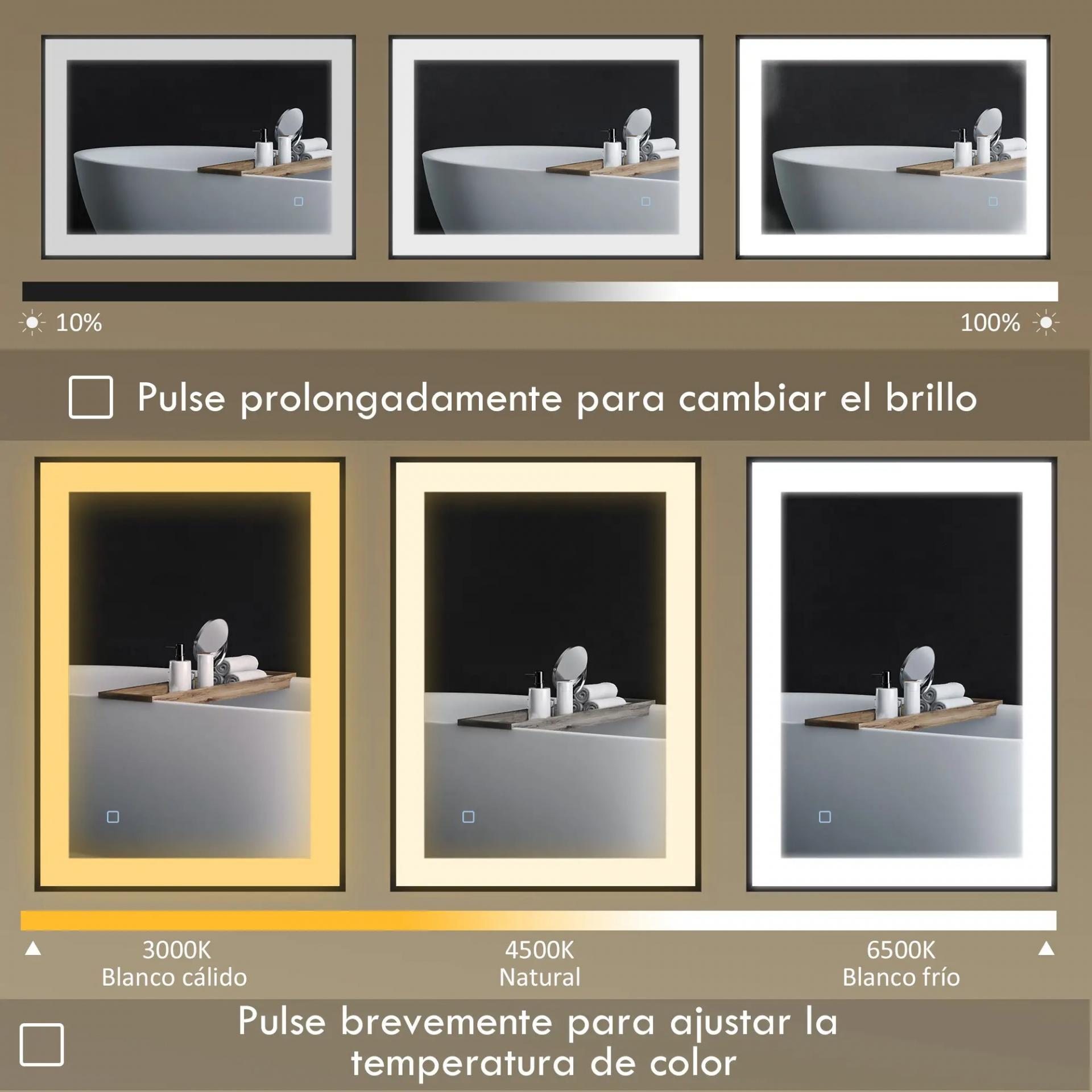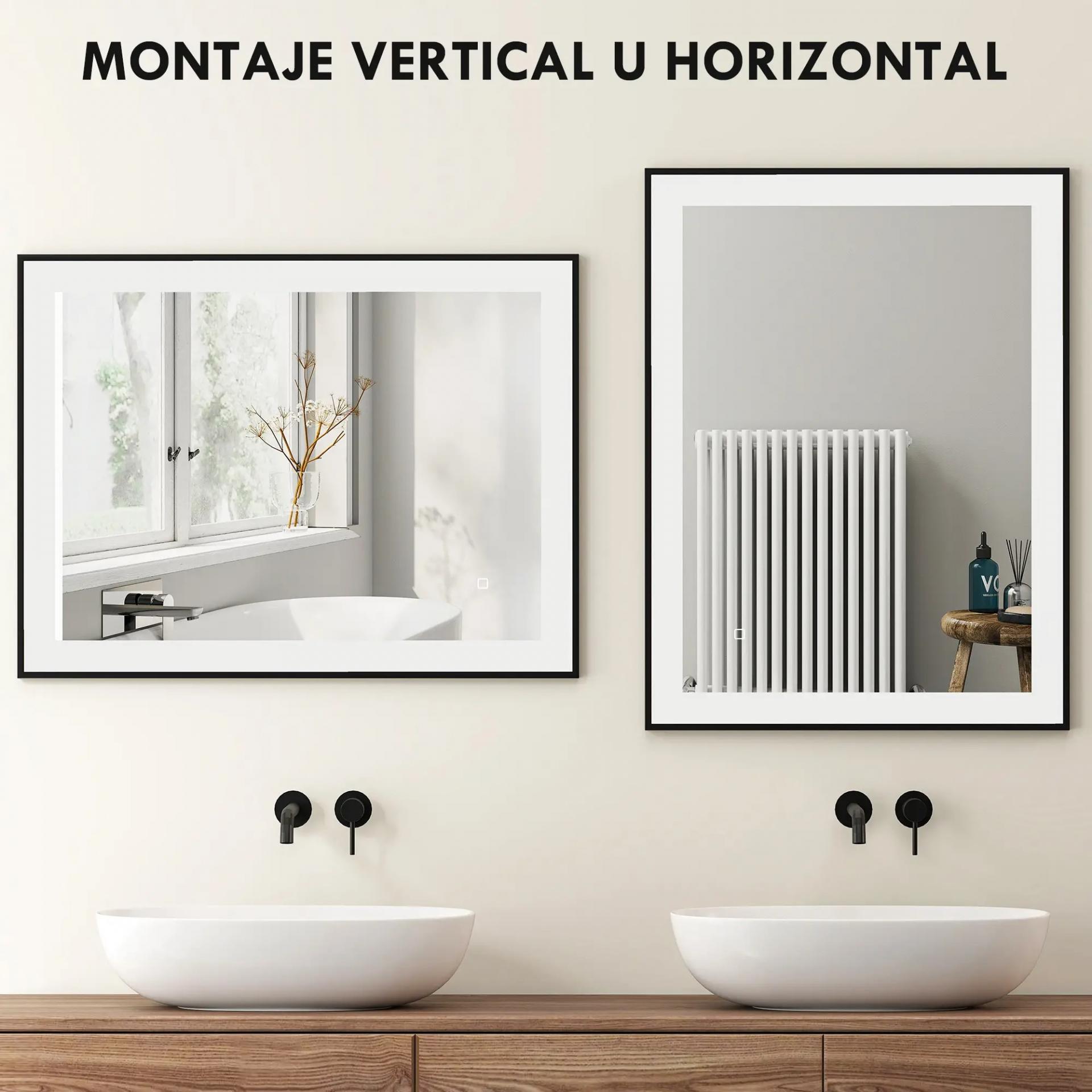 Espejo de Baño con Luz LED 80x60 cm con 3 Colores de Luz Función Antivaho Función de Memoria IP44 Horizontal/Vertical
