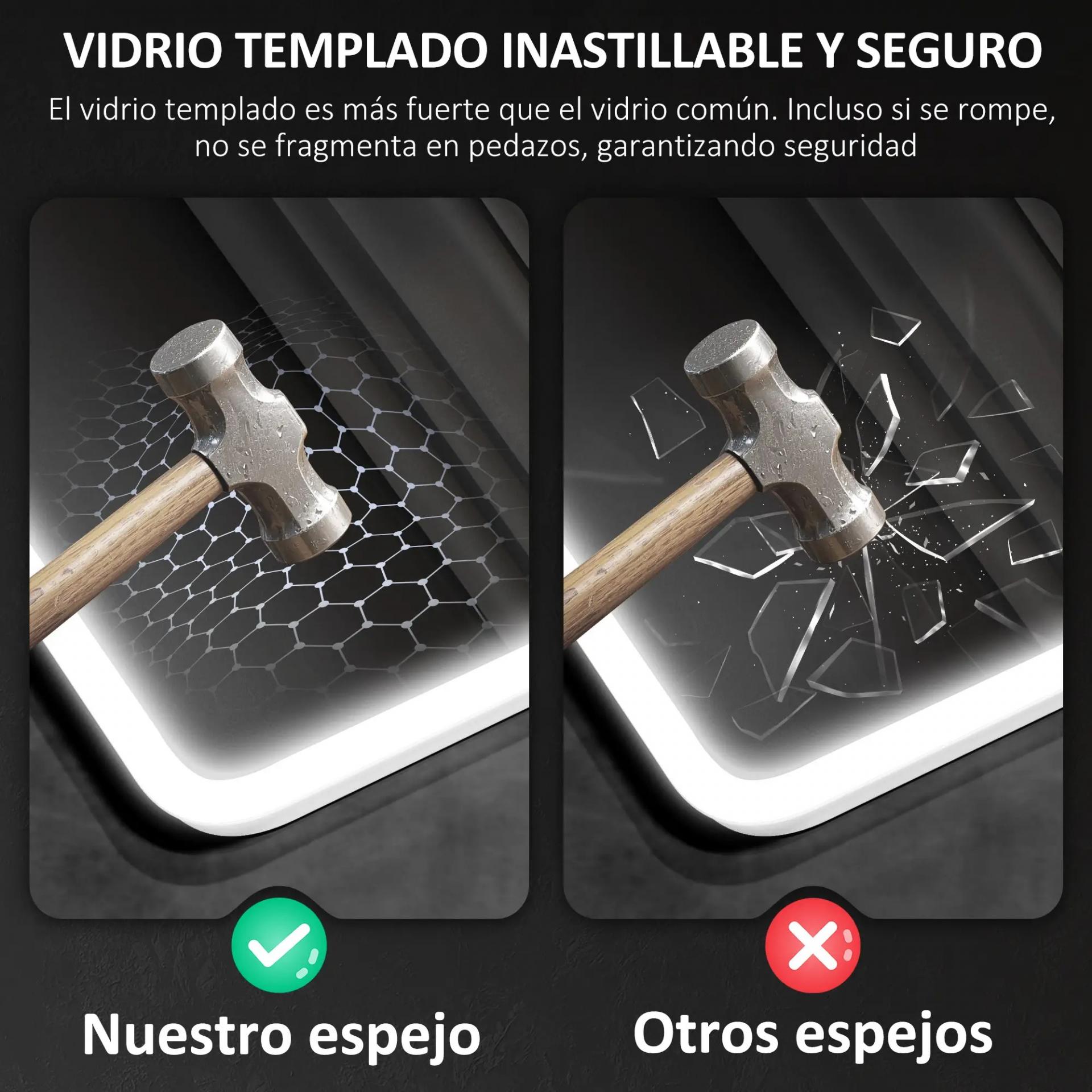 - ILUMINACIÓN PERSONALIZABLE: Este espejo de baño con luz te permite ajustar la luz según tu preferencia, con 3 opciones: cálida, natural o blanca fría. Con 258 LEDs y brillo regulable del 10% al 100%, se adapta a ti y a tu estado de ánimo
