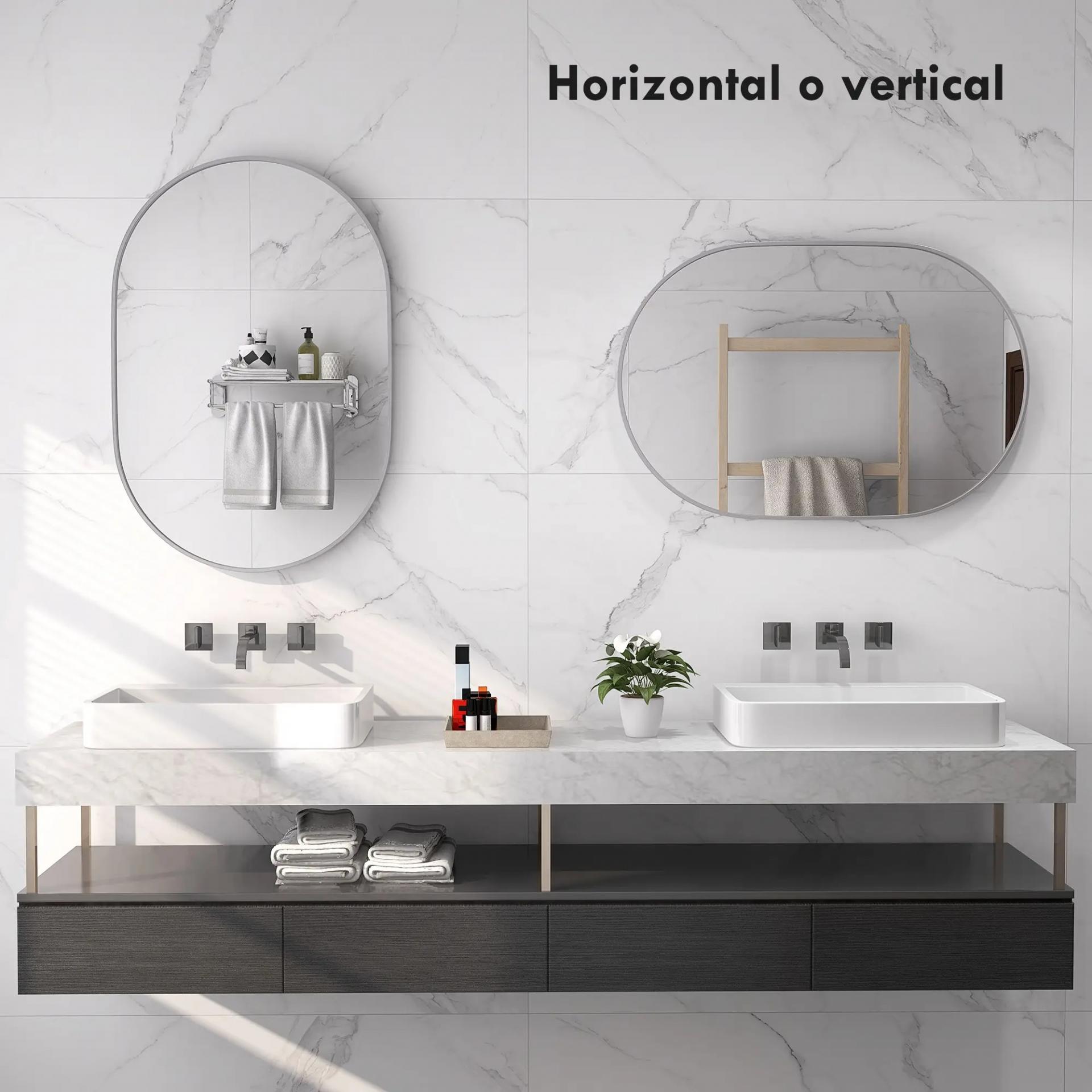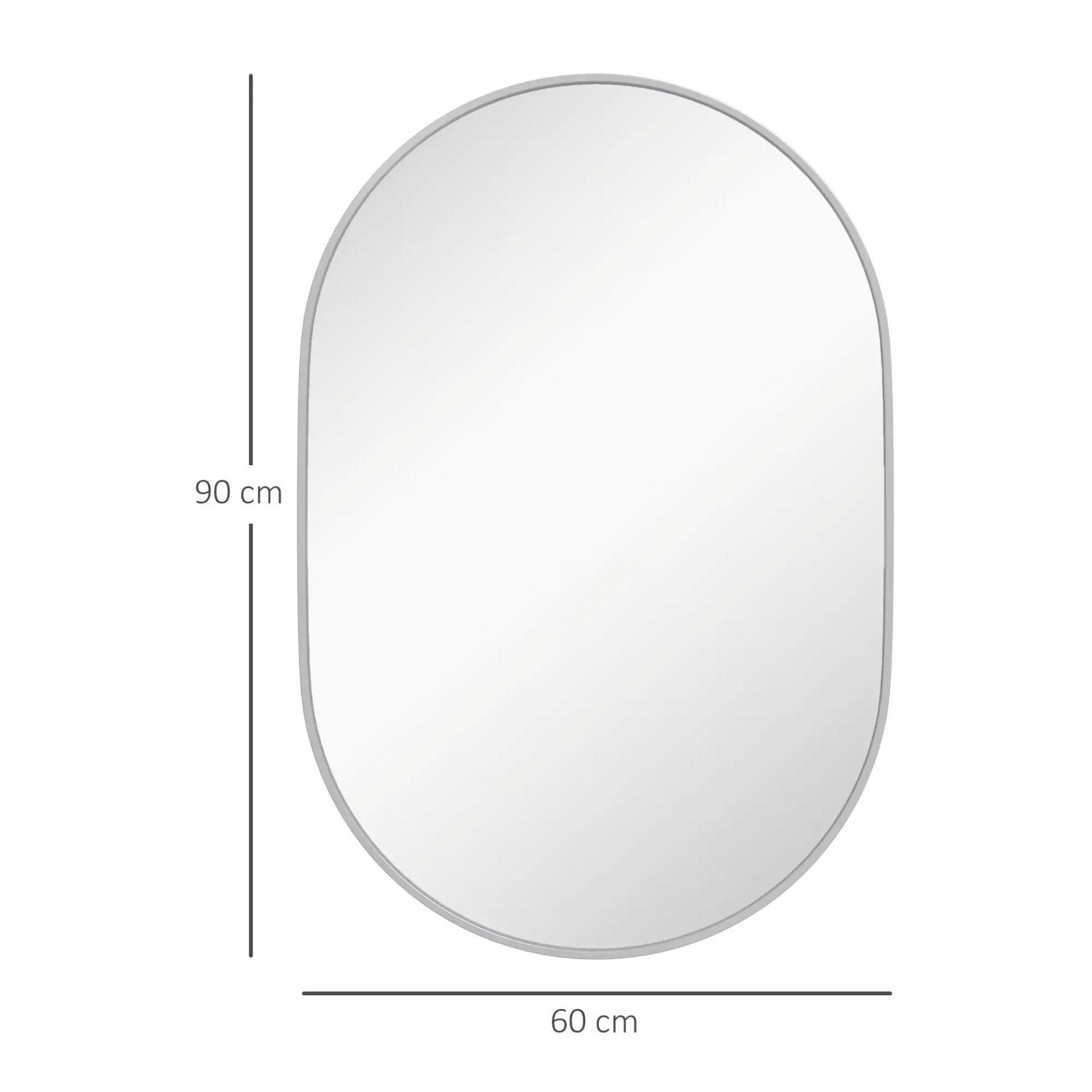 Espejo de Baño Ovalado 60x90 cm Espejo Decorativo de Pared con Marco de Aluminio para Salón Horizontal o Vertical Plata