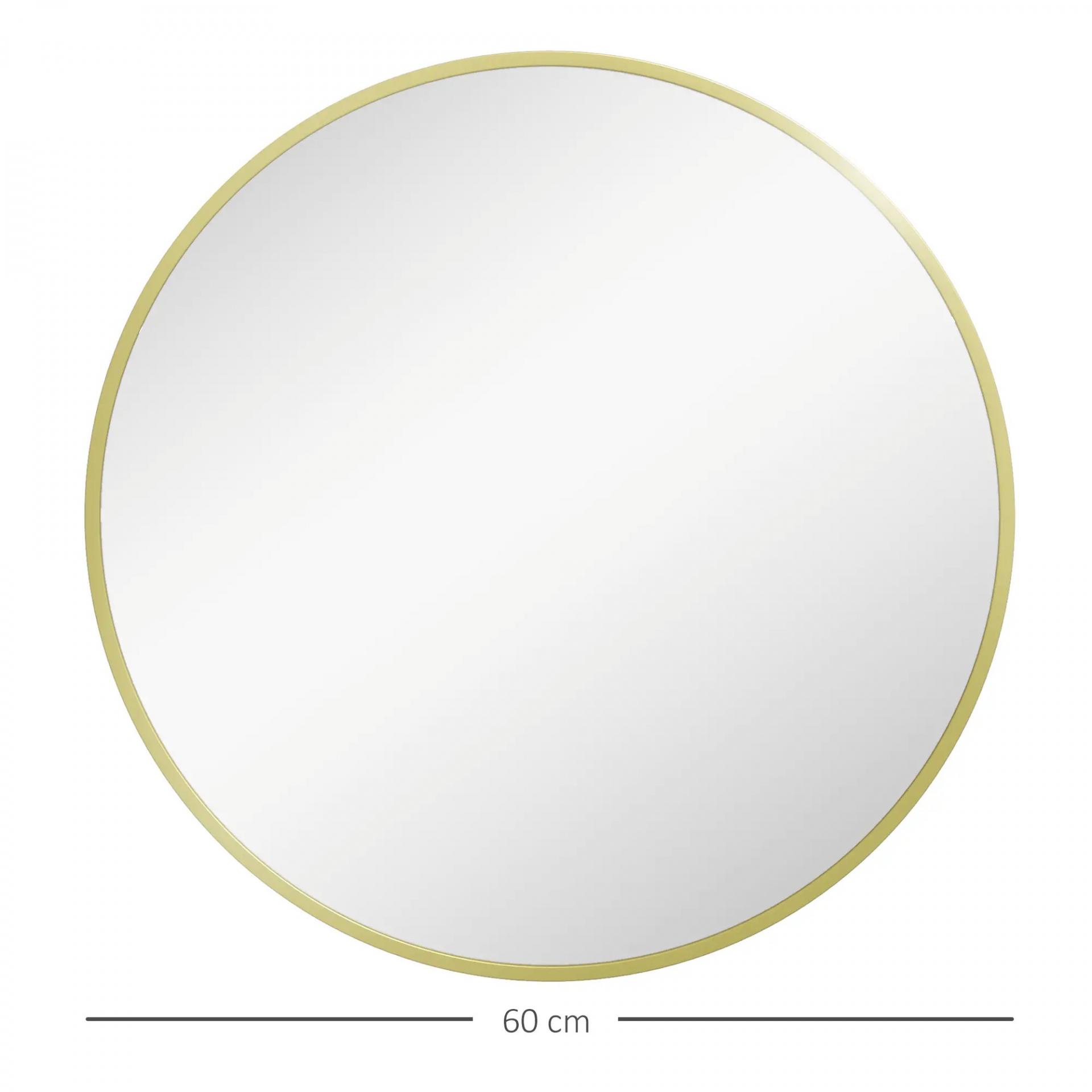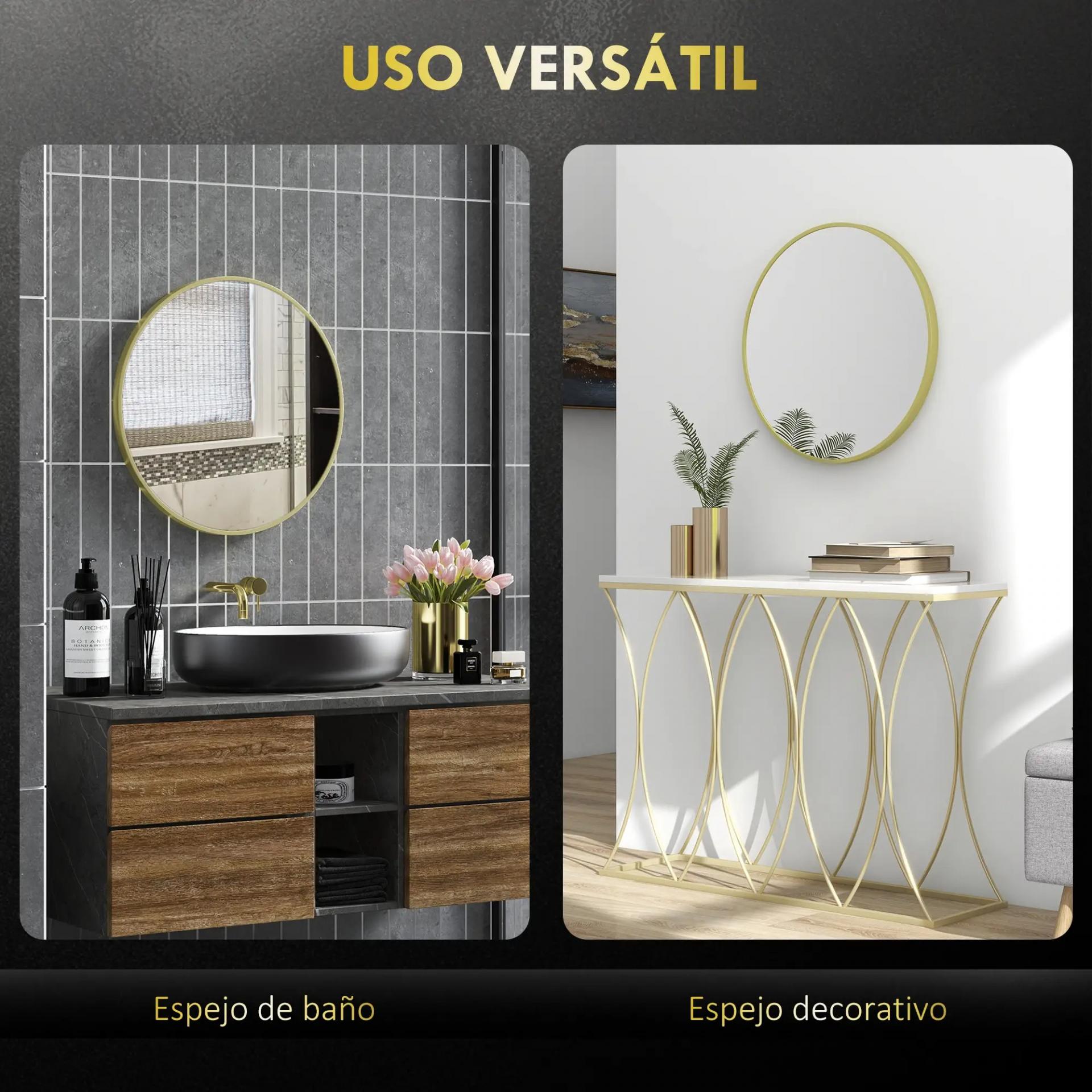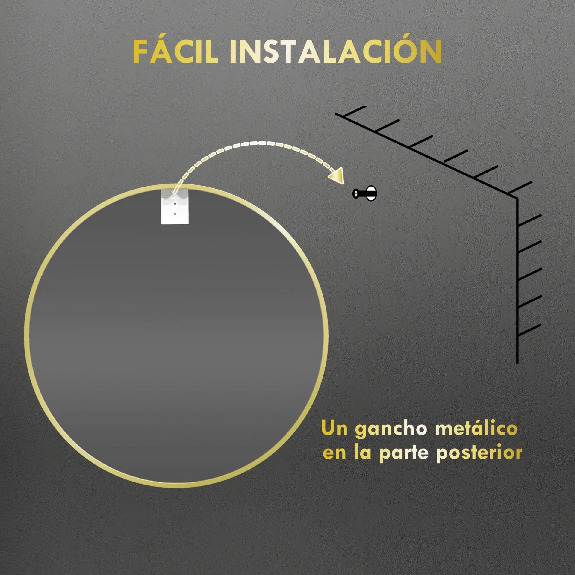 Espejo de Baño Redondo Ø60 cm Espejo Decorativo de Pared con Marco de Aluminio y Gancho Fácil Instalación Dorado