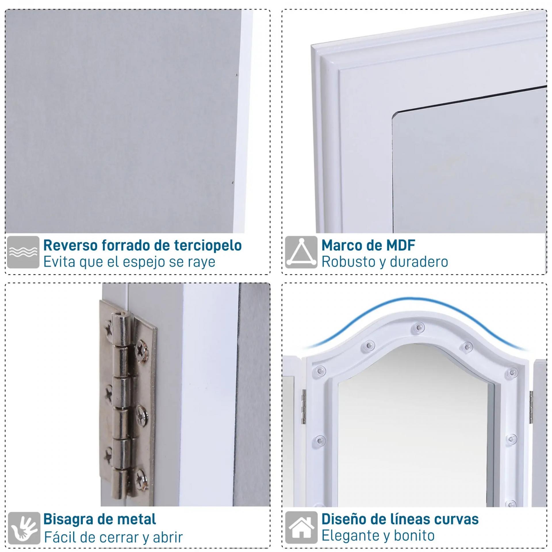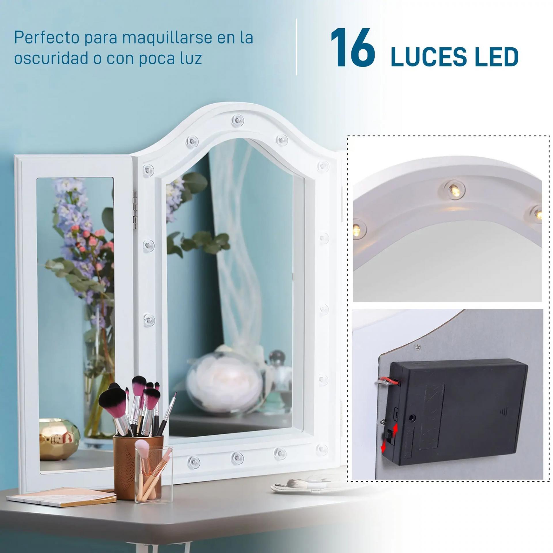 - FUENTE DE ALIMENTACIÓN: El espejo de maquillaje LED funciona con 3 pilas AA (no incluidas).
