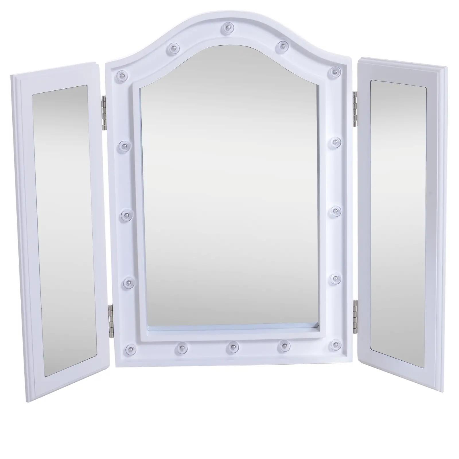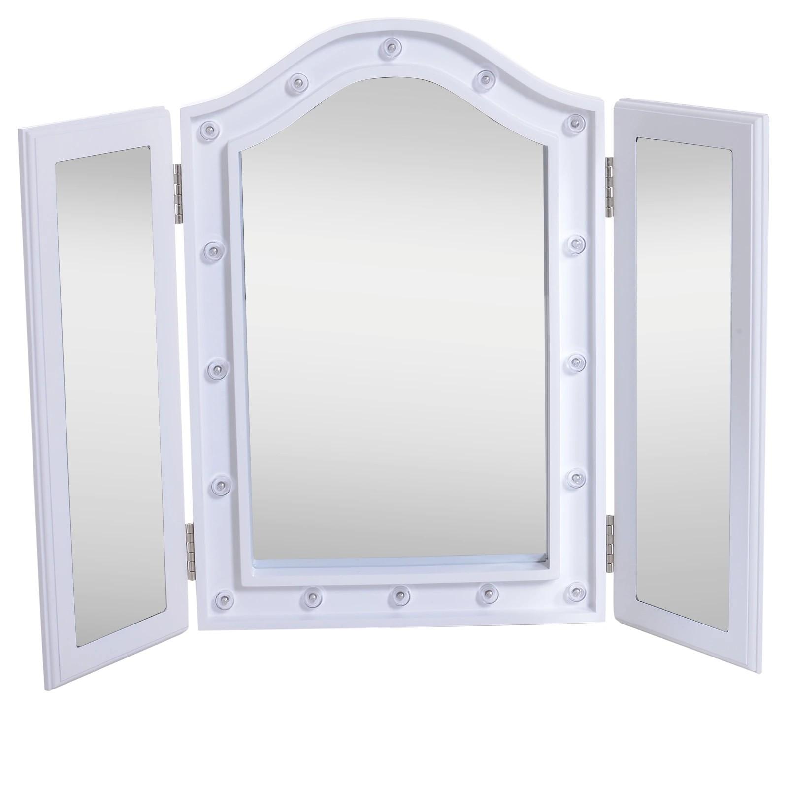 Espejo de Maquillaje con Luz LED Plegable Espejo Triple de Mesa Regalo Original para Mujer Cargo con Batería Espejo Cosmético con Iluminación 73x53.5x4.5cm