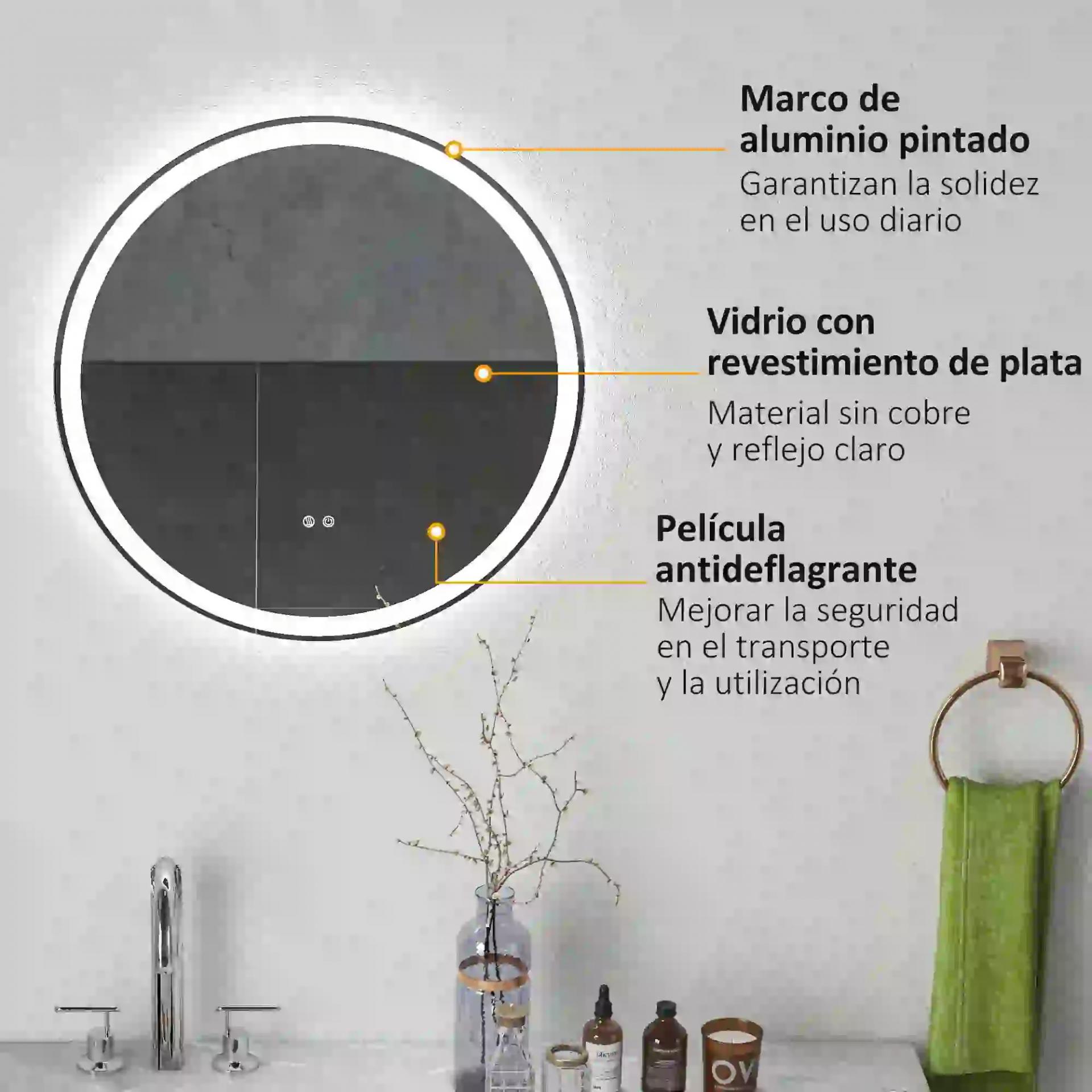 - TÁCTIL Y CON FUNCIÓN DE MEMORIA: Controla este espejo de baño con un solo toque. Incluye botones para encender/apagar, ajustar color y brillo, y desempañar el cristal. Su función de memoria guarda el último ajuste realizado