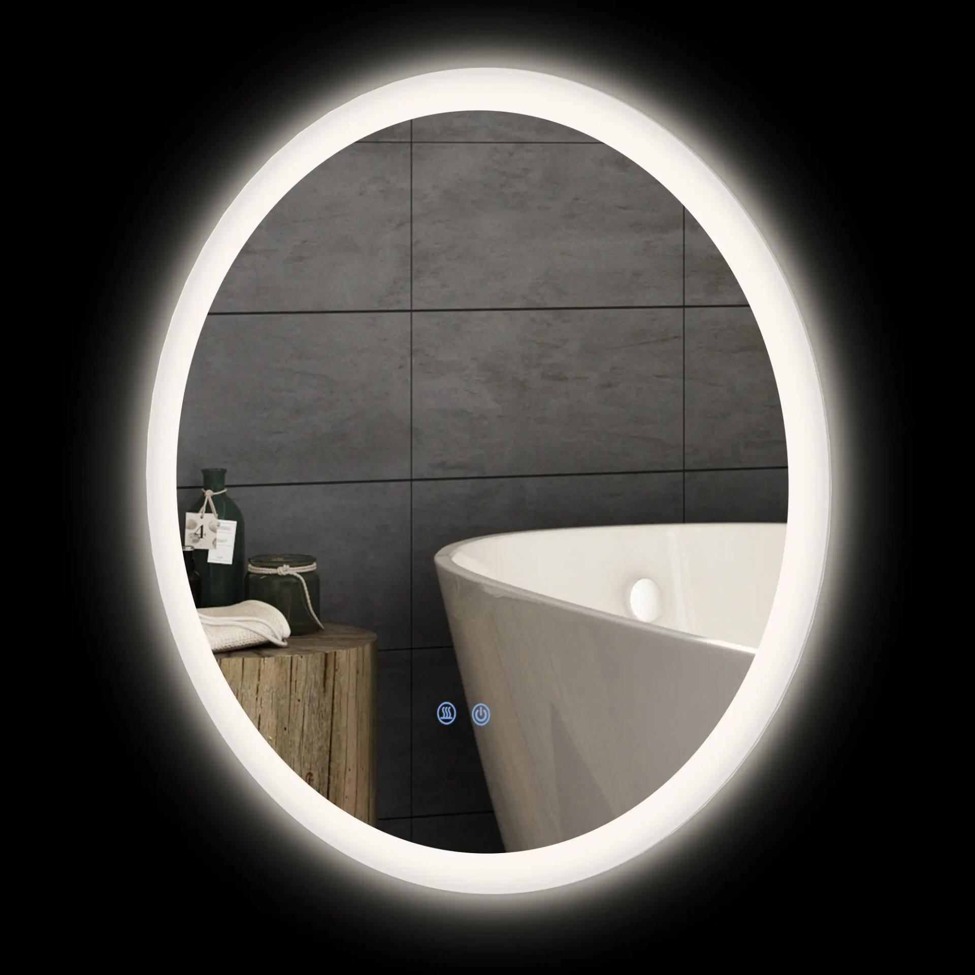Espejo de Baño Redondo con Luces LED Ø60x3 cm Espejo Antivaho 3 Luces de Colores Función de Memoria Interruptor Táctil