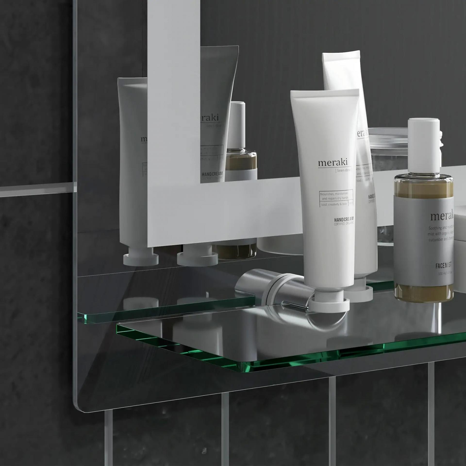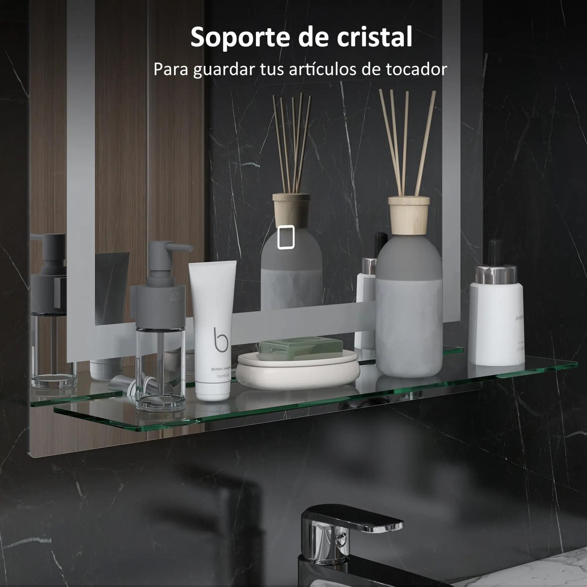 - ESTANTE DE CRISTAL: Este espejo para baño incluye un estante de vidrio de 48x12 cm, perfecto para organizar tus accesorios de baño como cepillos de dientes, perfumes y cosméticos