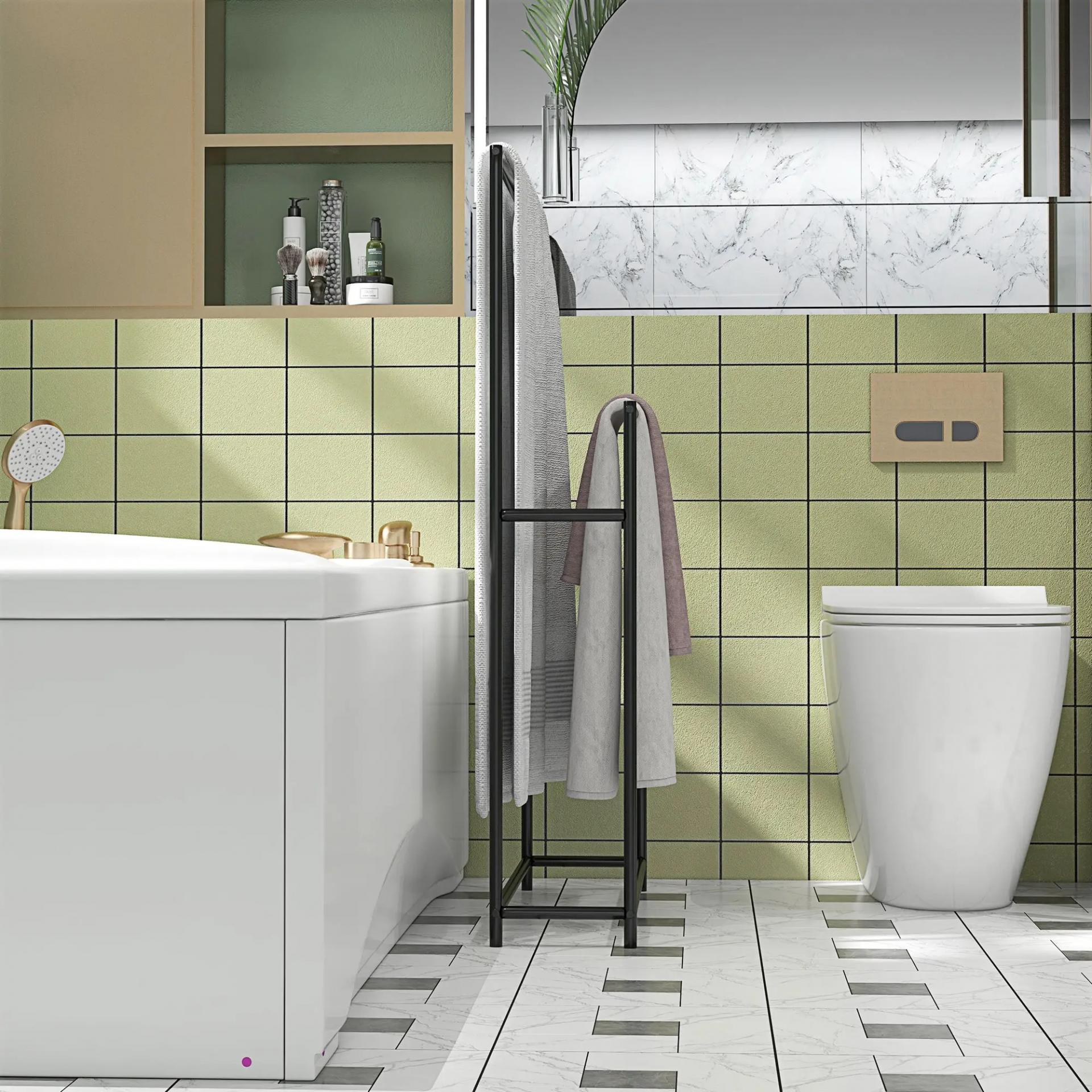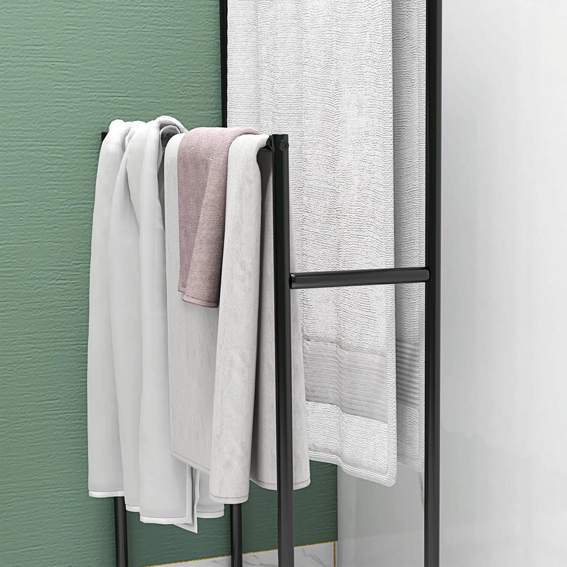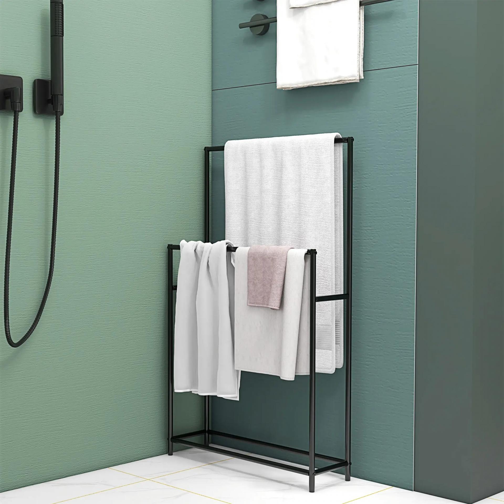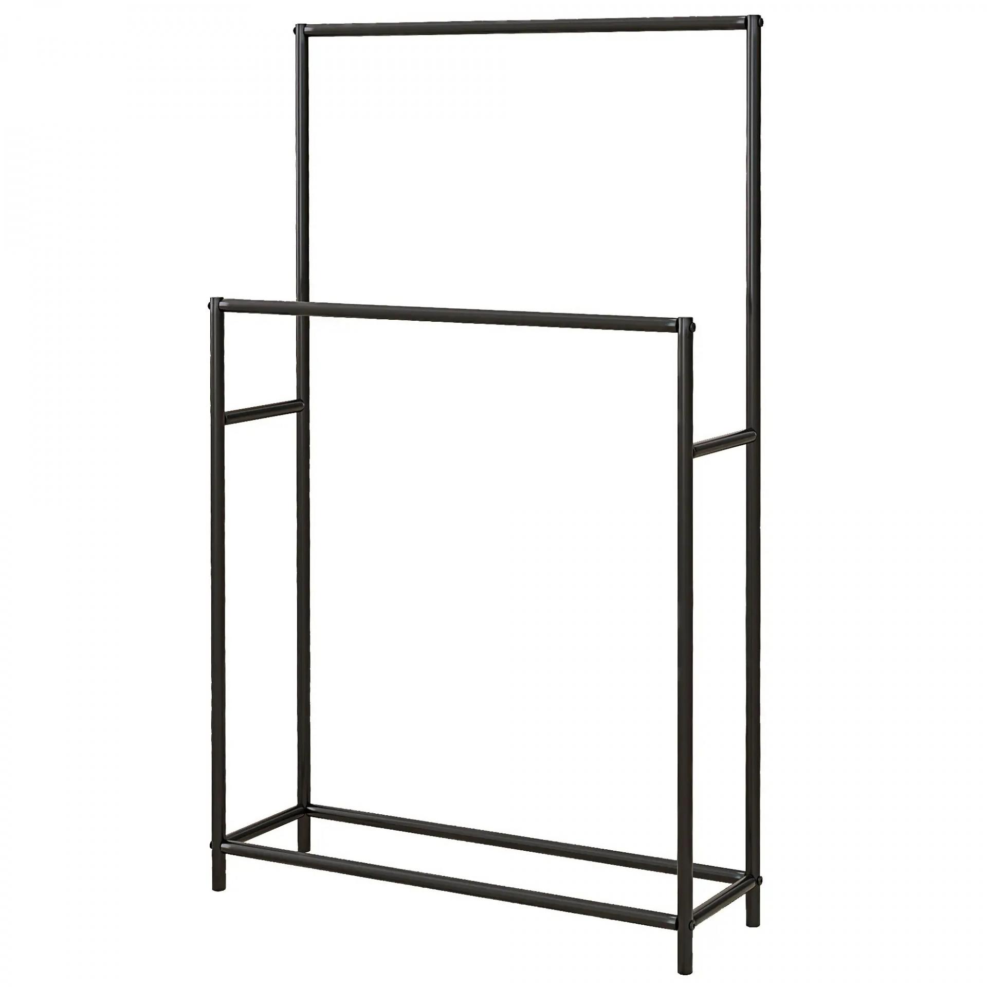Toallero de Pie con 2 Barras y Marco Metálico Toallero de Baño Moderno 66x20x110 cm Negro