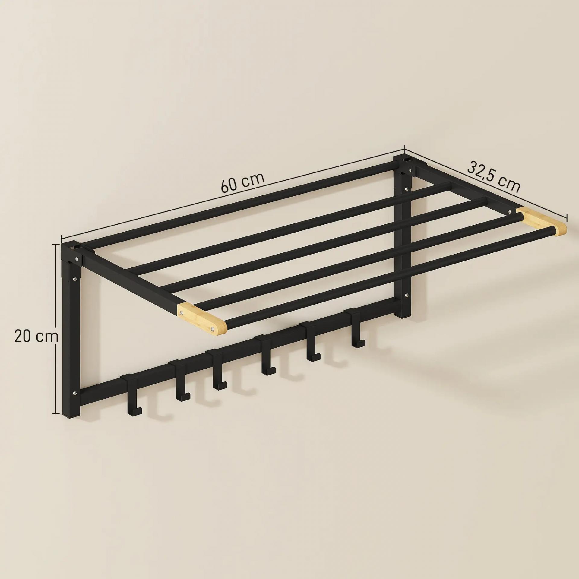 Toallero de Baño de Pared Toallero Plegable con 5 Barras y 6 Ganchos para Toallas Baño 60 cm Negro