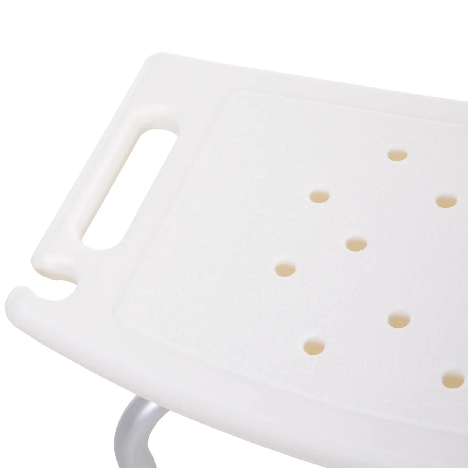 - ASIENTO DE PLÁSTICO HDPE: Taburete de ducha con estructura resistente de aluminio y asiento de plástico HDPE higiénico (polietileno de alta densidad), fácil de limpiar, respetuoso con el medio ambiente y antibacteriano. Dispone de orificios de drenaje para proporcionar un asiento más cómodo