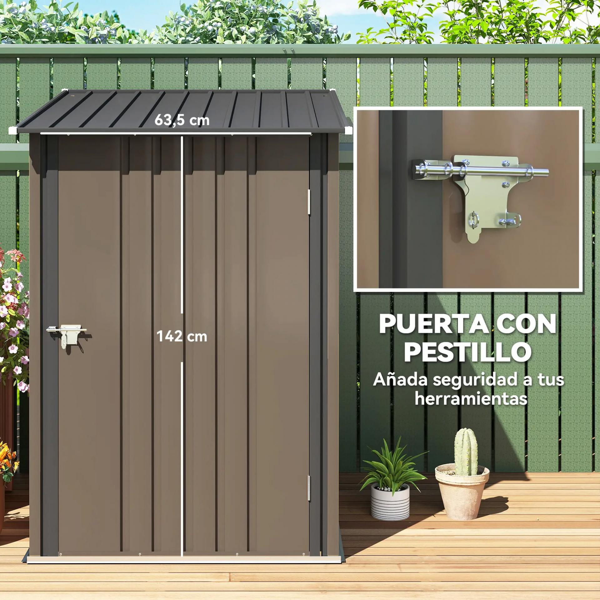 Caseta de Jardín Metálica 0,92 m² 100x103x160 cm con 1 Puerta y Cerradura para Almacenamiento de Herramientas Marrón