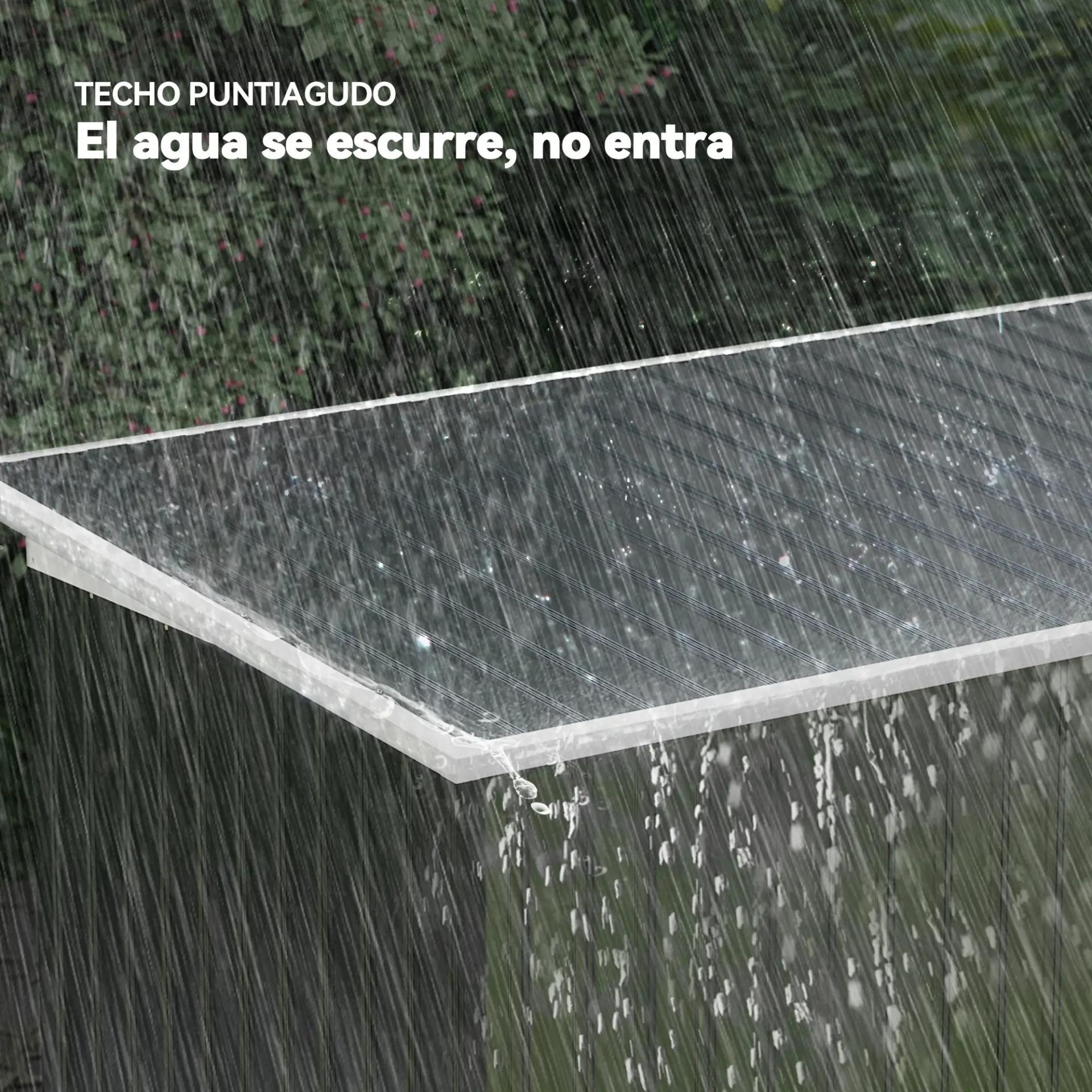 - BUENA VENTILACIÓN Y TECHO INCLINADO: Para asegurar una buena ventilación, esta caseta de jardín cuenta con dos aberturas en la parte frontal. Además, el techo inclinado permite el drenaje del agua y evita la acumulación de nieve