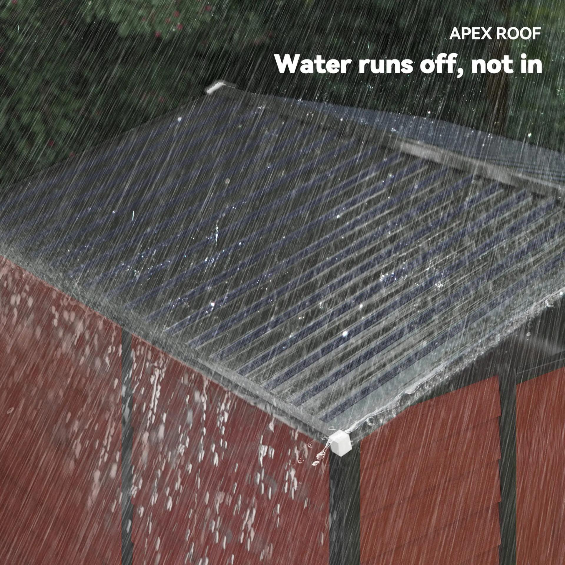- IDEAL PARA JARDINES PEQUEÑOS: Este cobertizo de 240x206 cm ofrece espacio para guardar cortacésped, bicis o herramientas largas. Sus 4 ventanas de ventilación evitan la humedad y los malos olores, manteniendo todo en buen estado