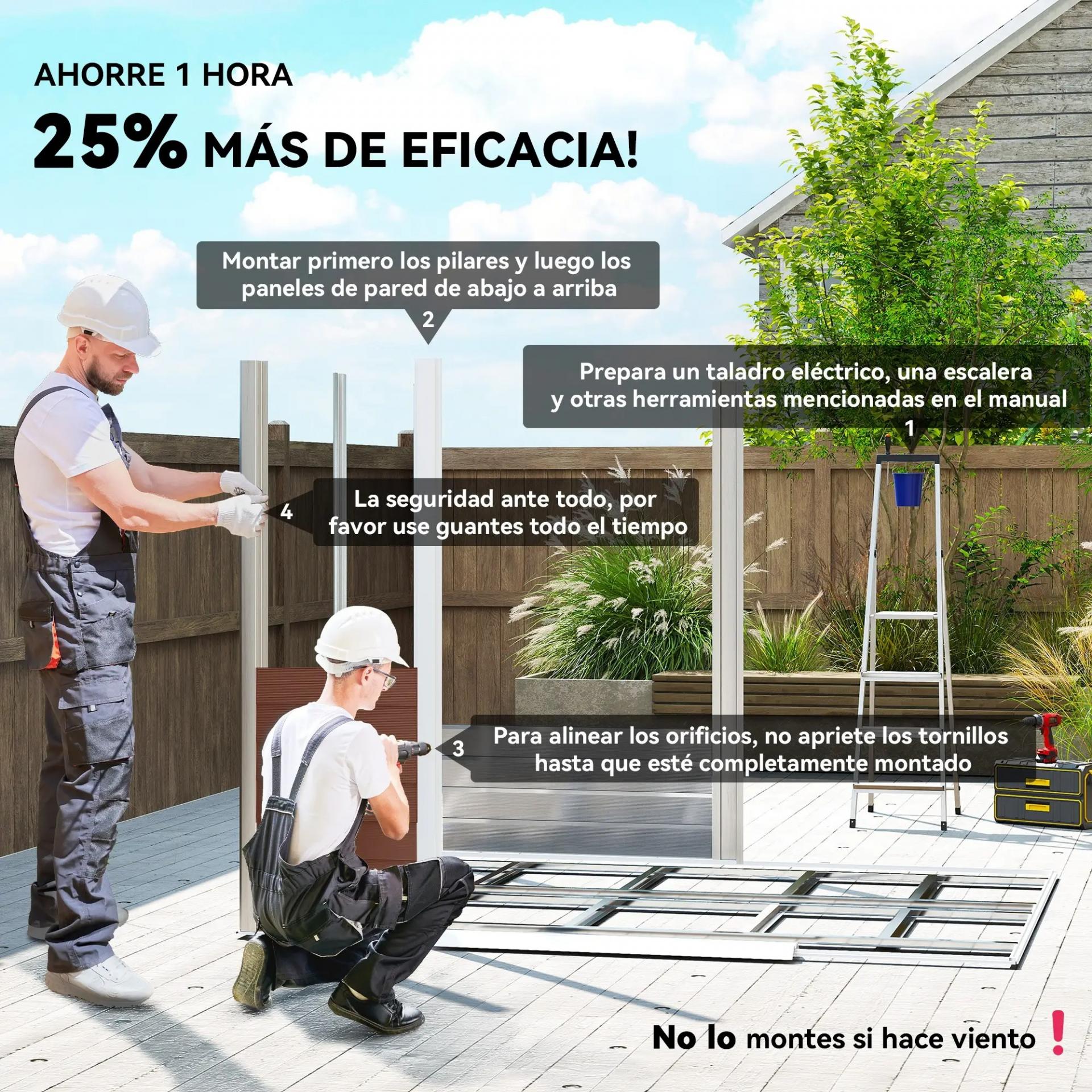 AHORRA TIEMPO EN EL MONTAJE: Este cobertizo de exterior con paneles horizontales reduce la dificultad de montaje y mejora la eficiencia en un 25 %. Dedica menos tiempo al montaje y más a disfrutar de tu jardín