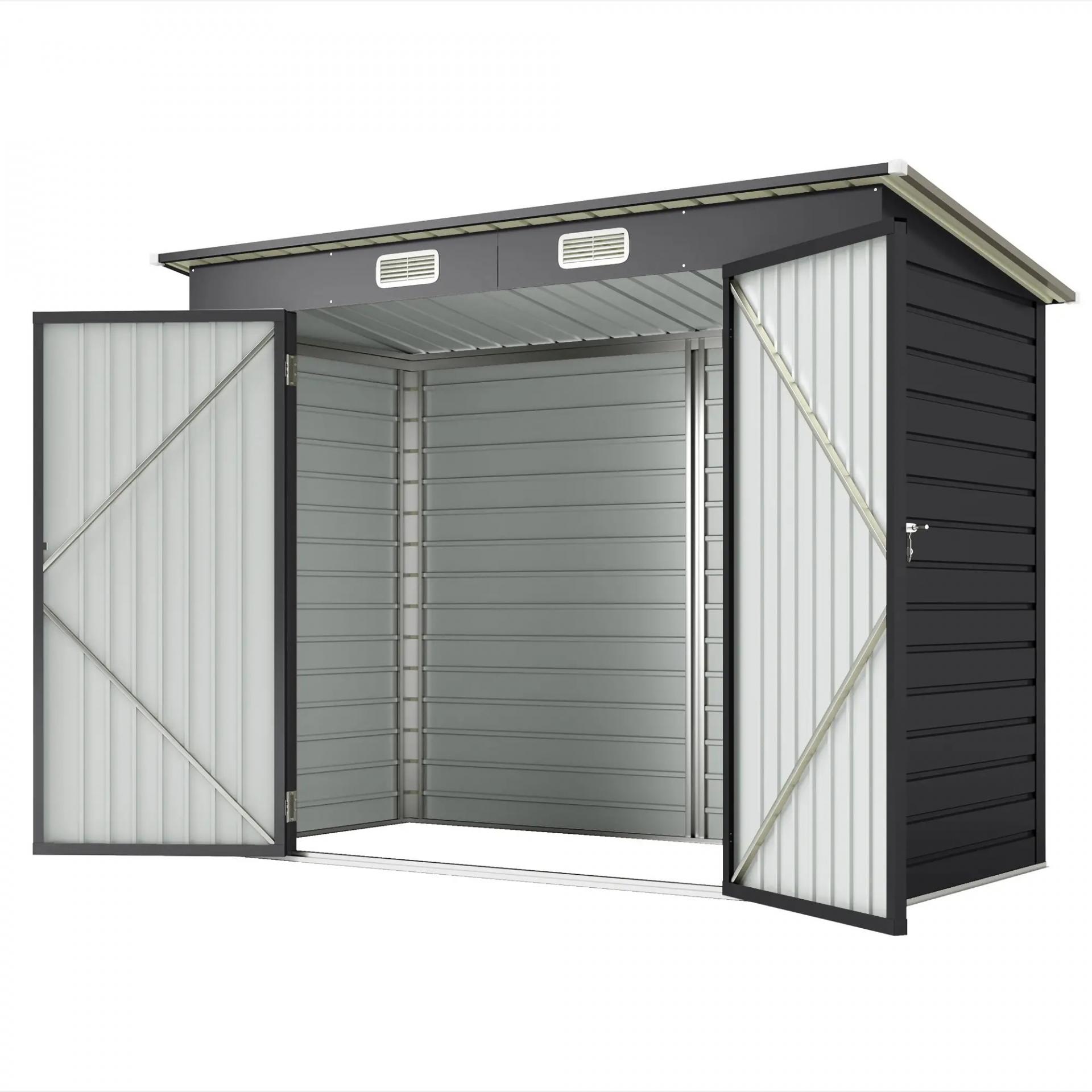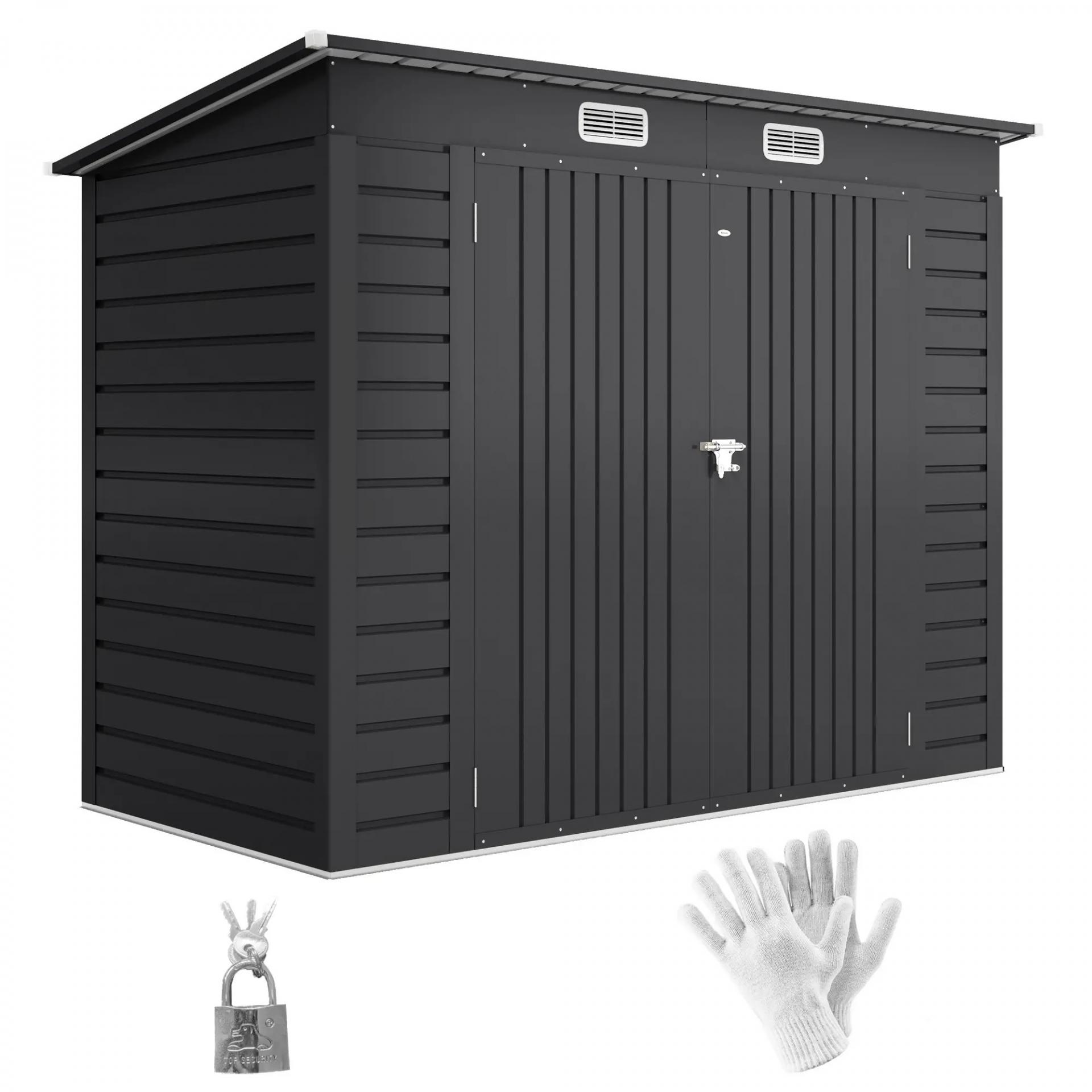 Caseta de Jardín Exterior 2,7m² 249x121x183 cm con Doble Puerta 2 Ventilaciones y Pestillo Gris