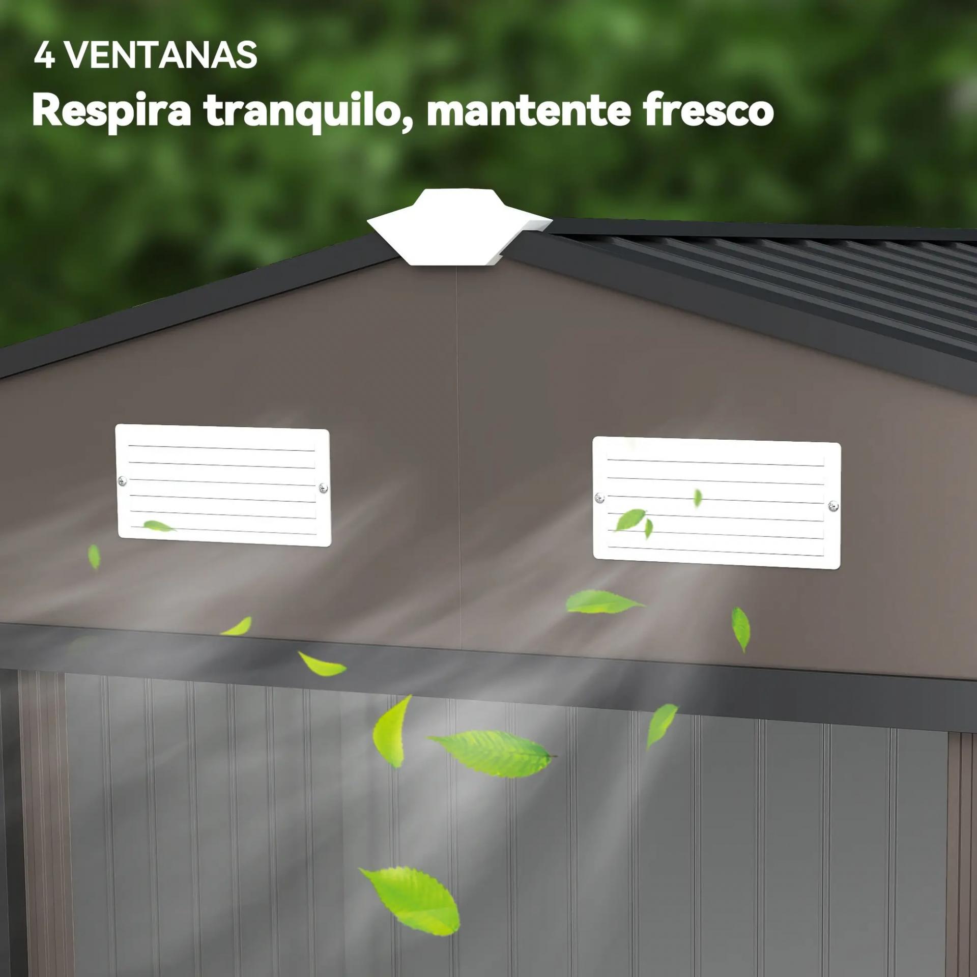 - RESISTENTE Y ESTABLE: El cobertizo metálico está fabricado en acero galvanizado con revestimiento anticorrosivo, ideal para uso prolongado al aire libre. Su estructura con base reforzada, aunque no incluye suelo, garantiza estabilidad y durabilidad