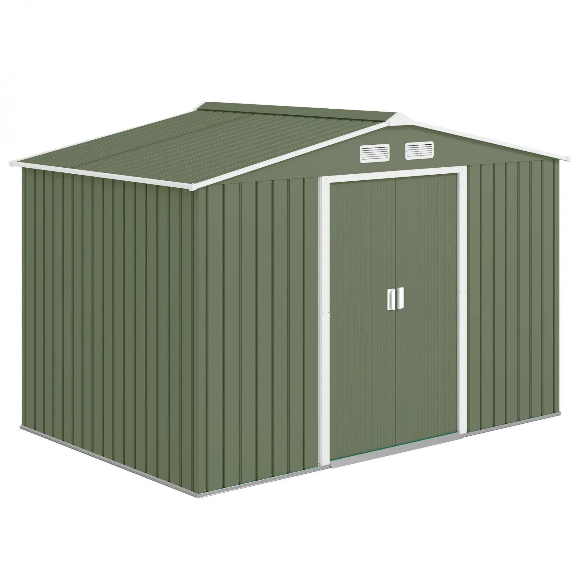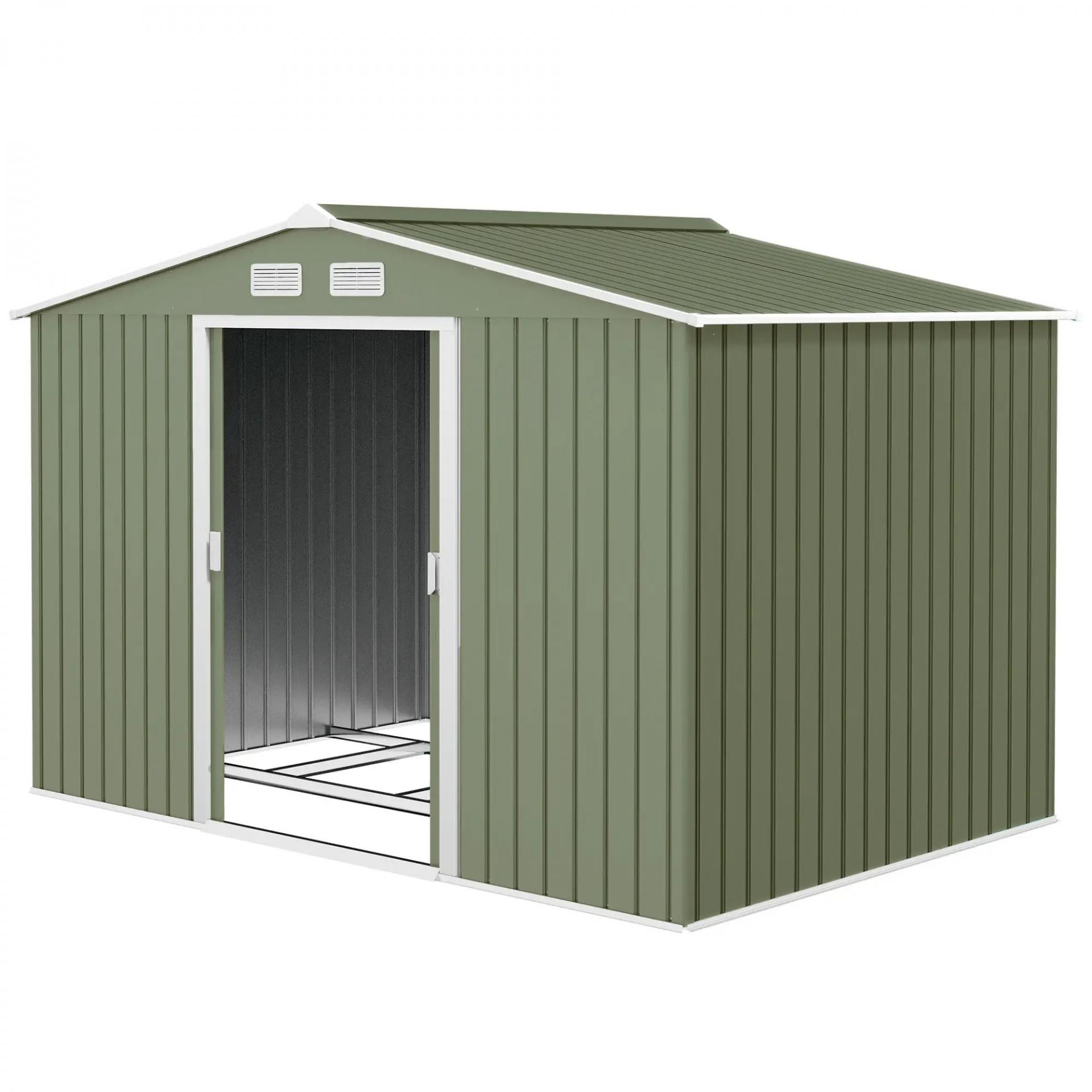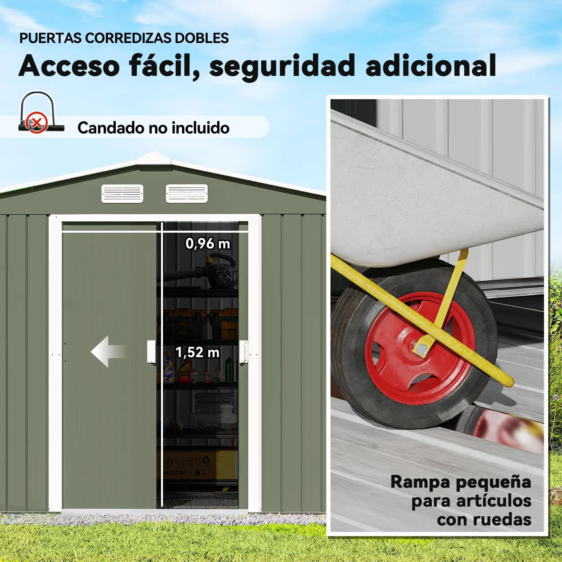 Cobertizo de Jardín 4,9 m² 277x195x192 cm con 2 Puertas Corredizas Base Refuerzo (Suelo NO Incluido) Verde Claro