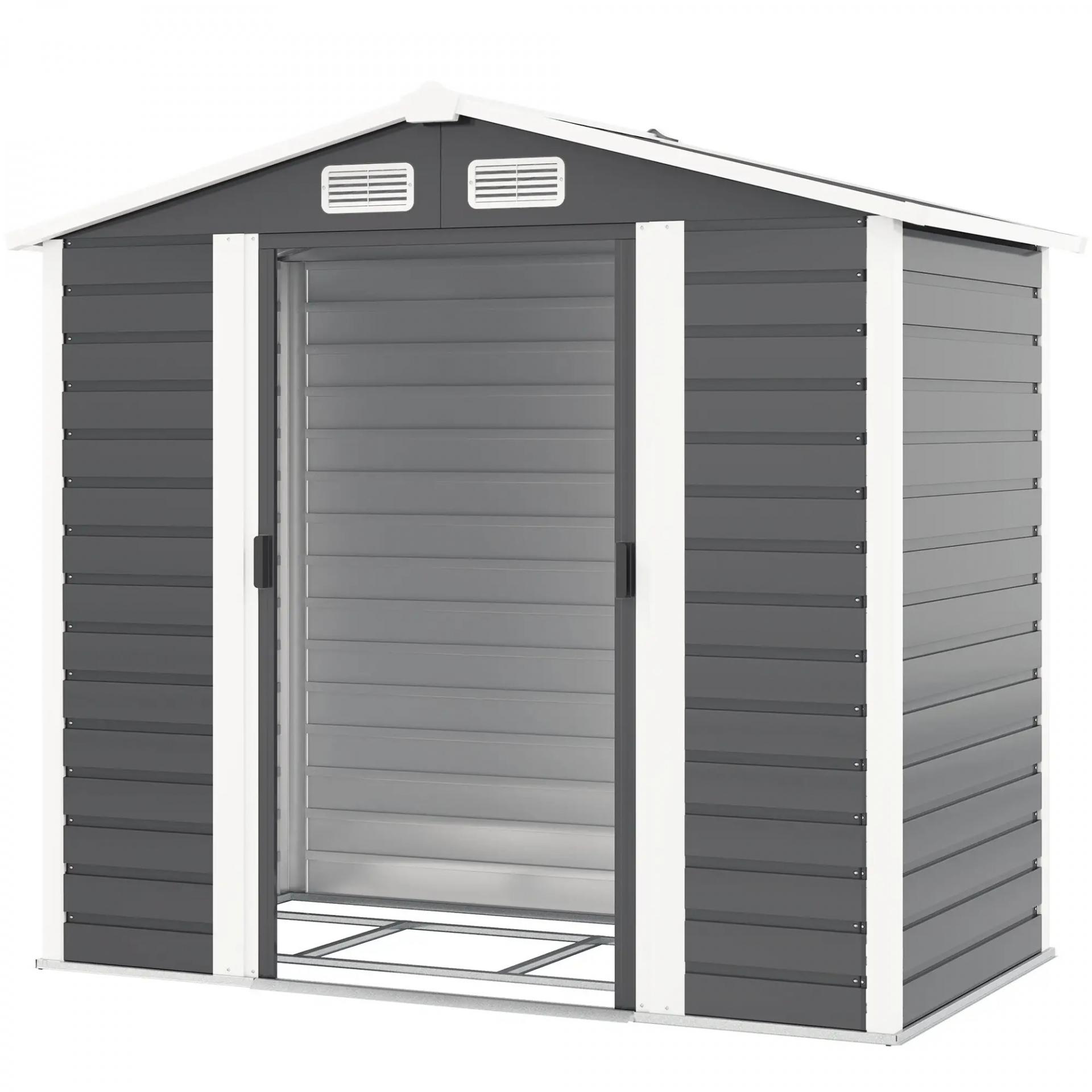 Cobertizo Metálico para Jardín 213x120x166/194 cm con Base Refuerzo Puertas Correderas y Ventilaciones Gris Oscuro