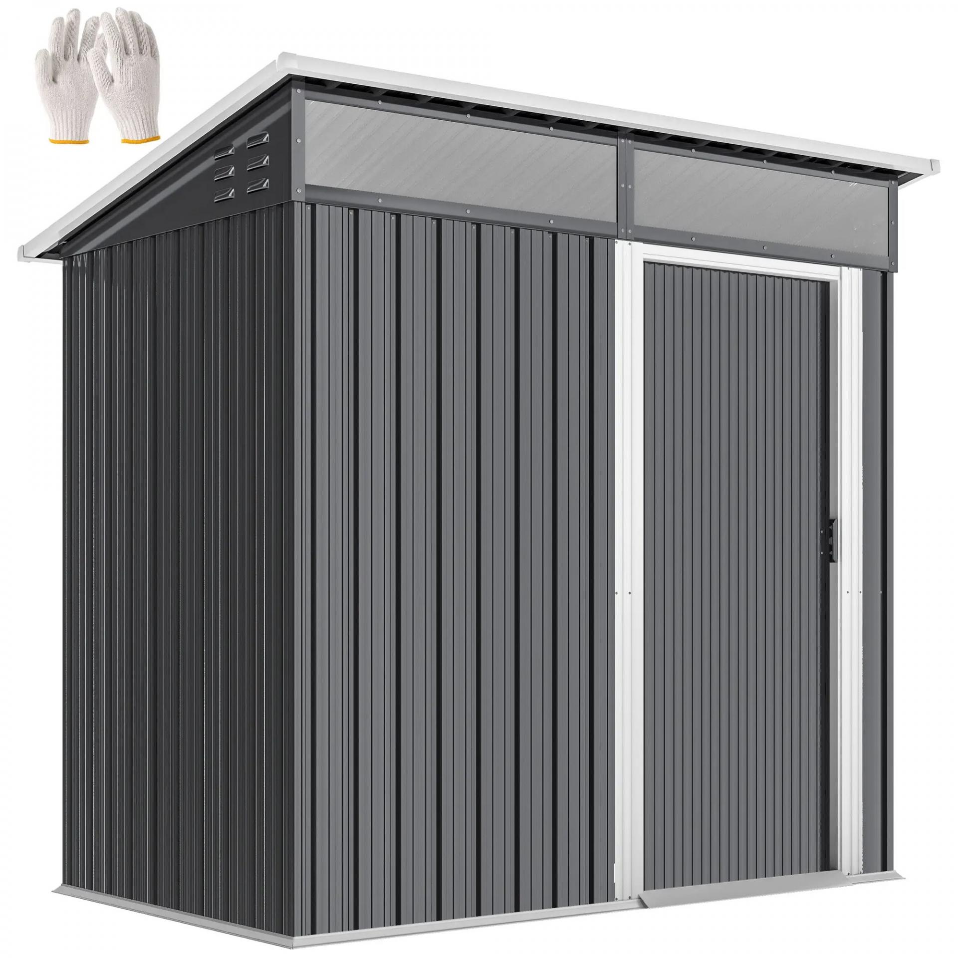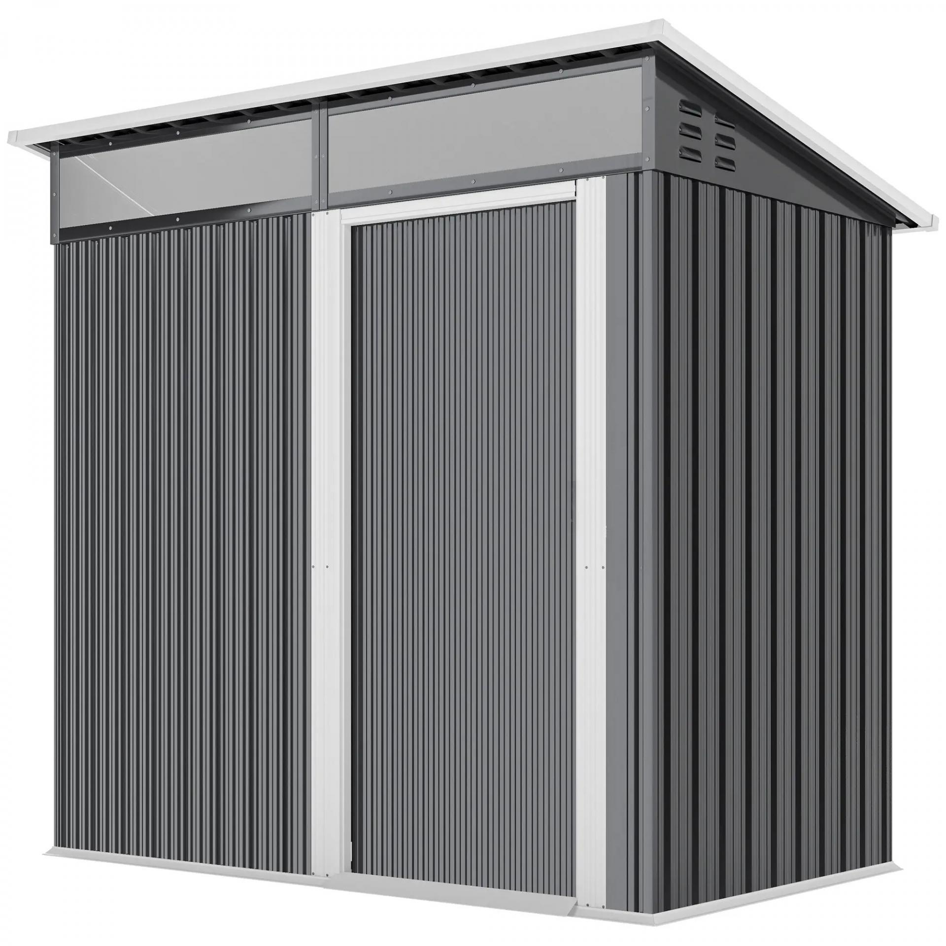 Caseta de Jardín Metálica con Puerta Corredera Ventanas y Ventilación para Almacenaje Exterior 195x122x159/182 cm Gris