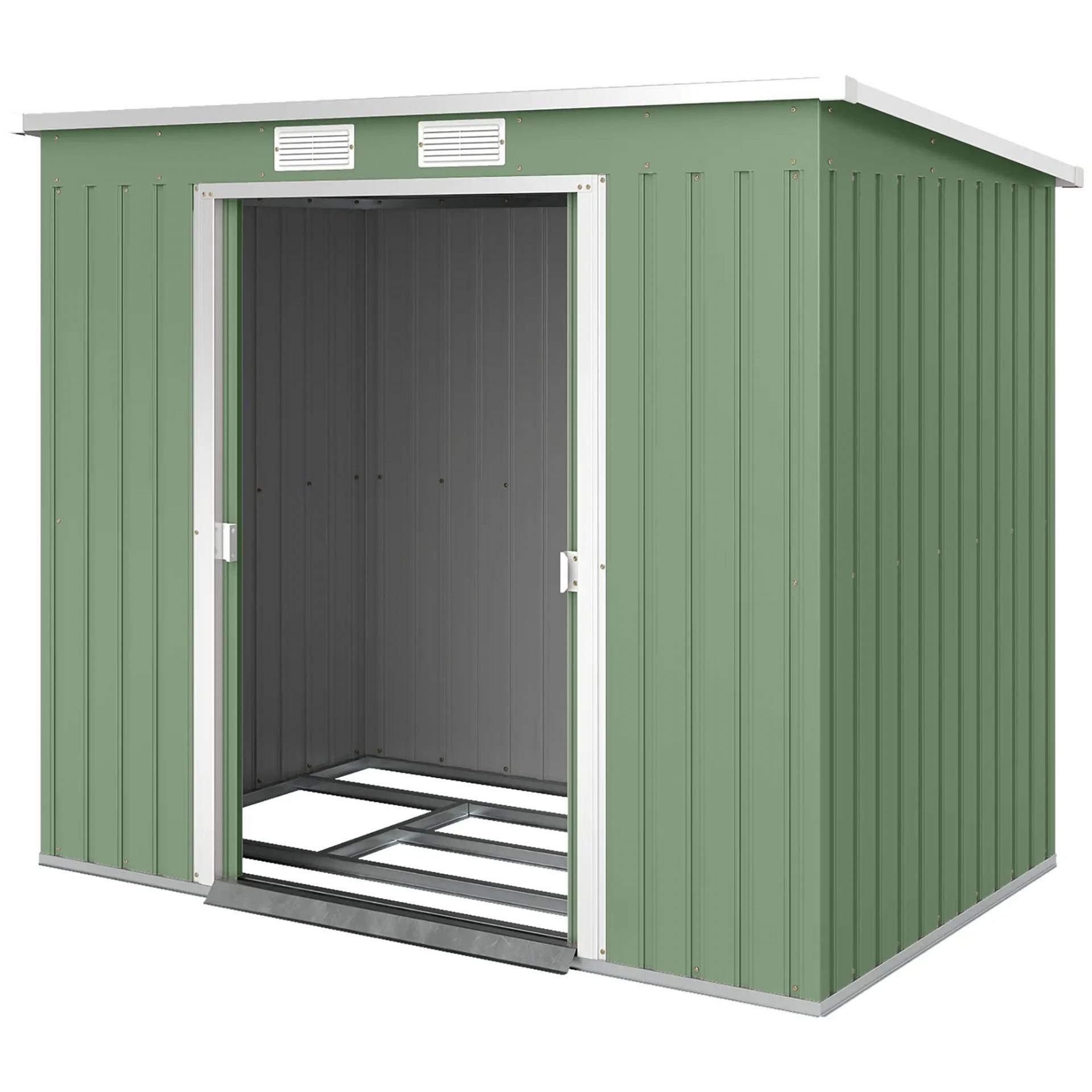 Cobertizo de Jardín 213x130x172 cm Caseta de Exterior Metálica para Almacenamiento de Herramientas Verde Oliva