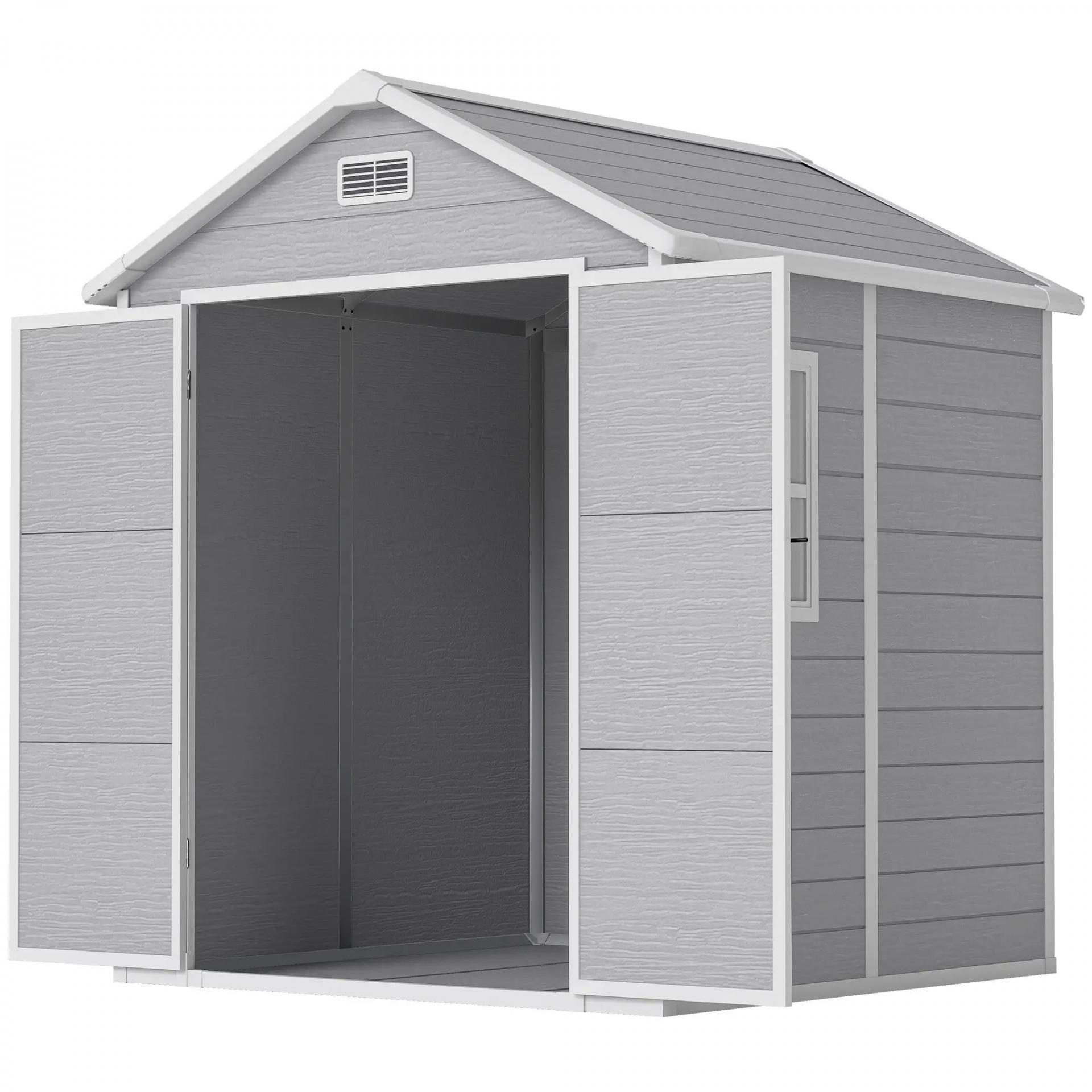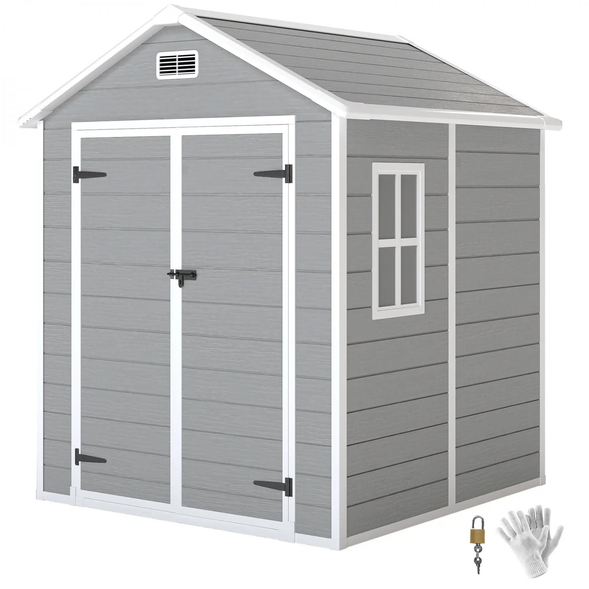 Caseta de Jardín Exterior 182x151x219 cm con Suelo Puerta Cerrada y Techo Inclinado para Almacenar Herramientas Gris