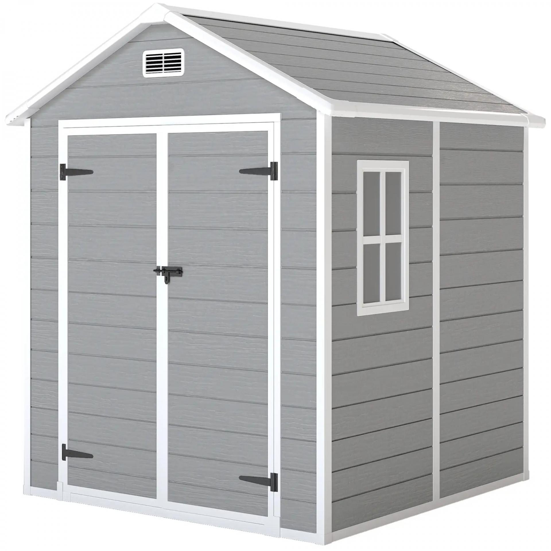 - LIGERO Y VENTILADO: La caseta de jardín cuenta con ventana translúcida tipo cabaña que deja pasar la luz natural, y dos rejillas que mejoran la ventilación interior, evitando malos olores y acumulación de humedad
