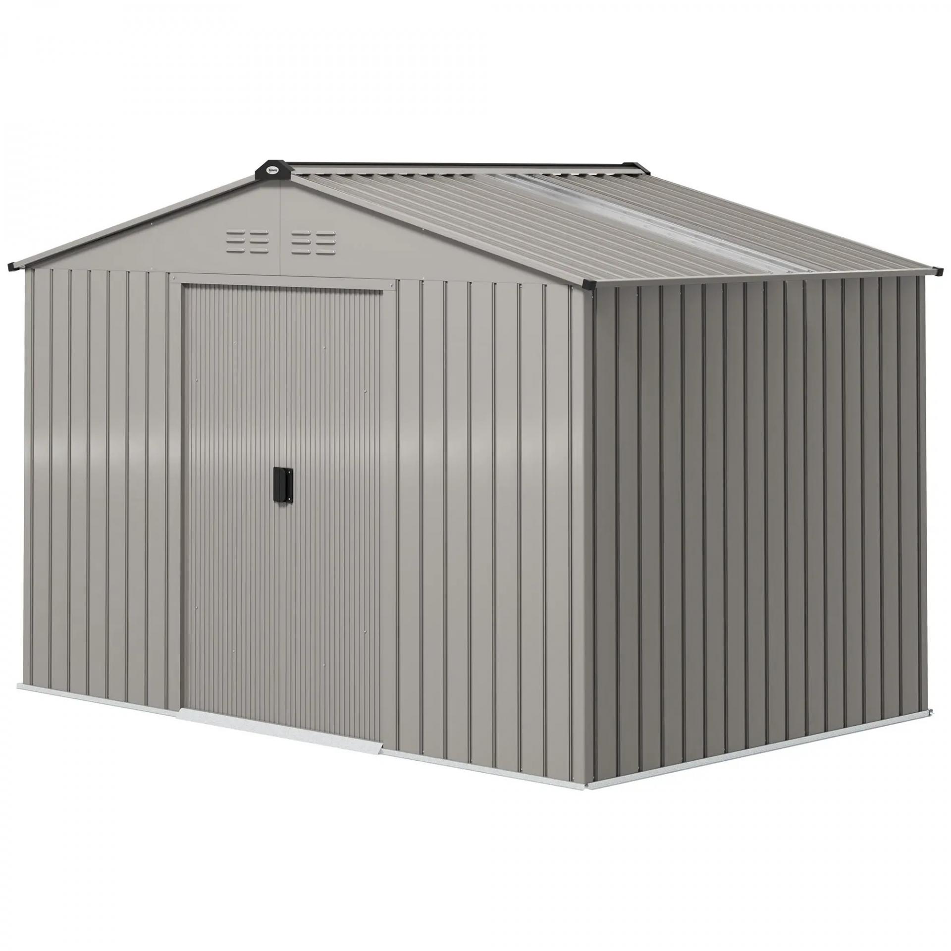 Cobertizo de Jardín 4,9 m² 277x195x192 cm con 2 Puertas Corredizas Techo Inclinado y 4 Ventanas Gris Plata