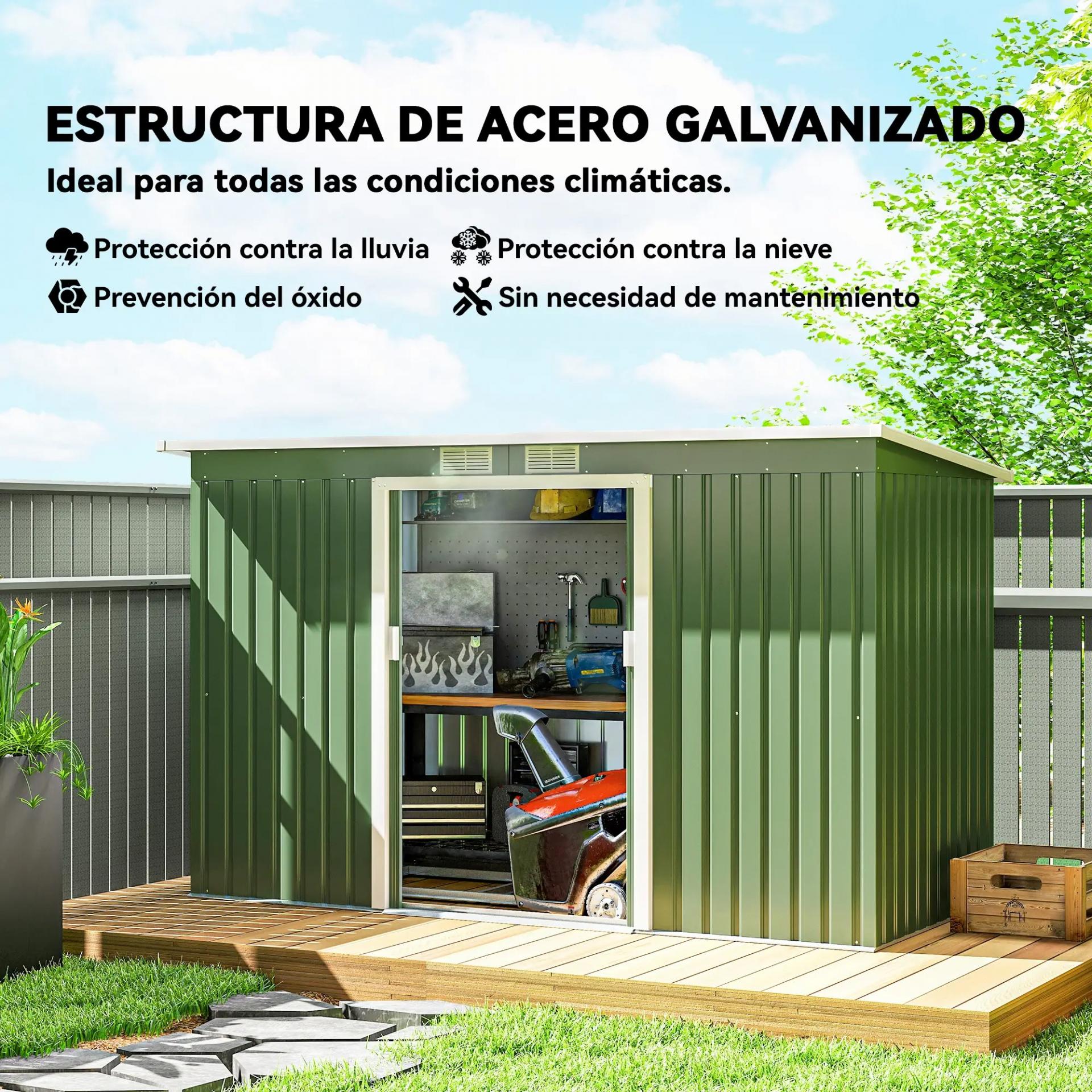 - ESTRUCTURA RESISTENTE: Esta caseta de jardín exterior para guardar herramientas, tiene una estructura de acero galvanizado con un acabado resistente a la intemperie y al óxido, lo que hace que sea ideal para utilizarla y mantenerla en el exterior