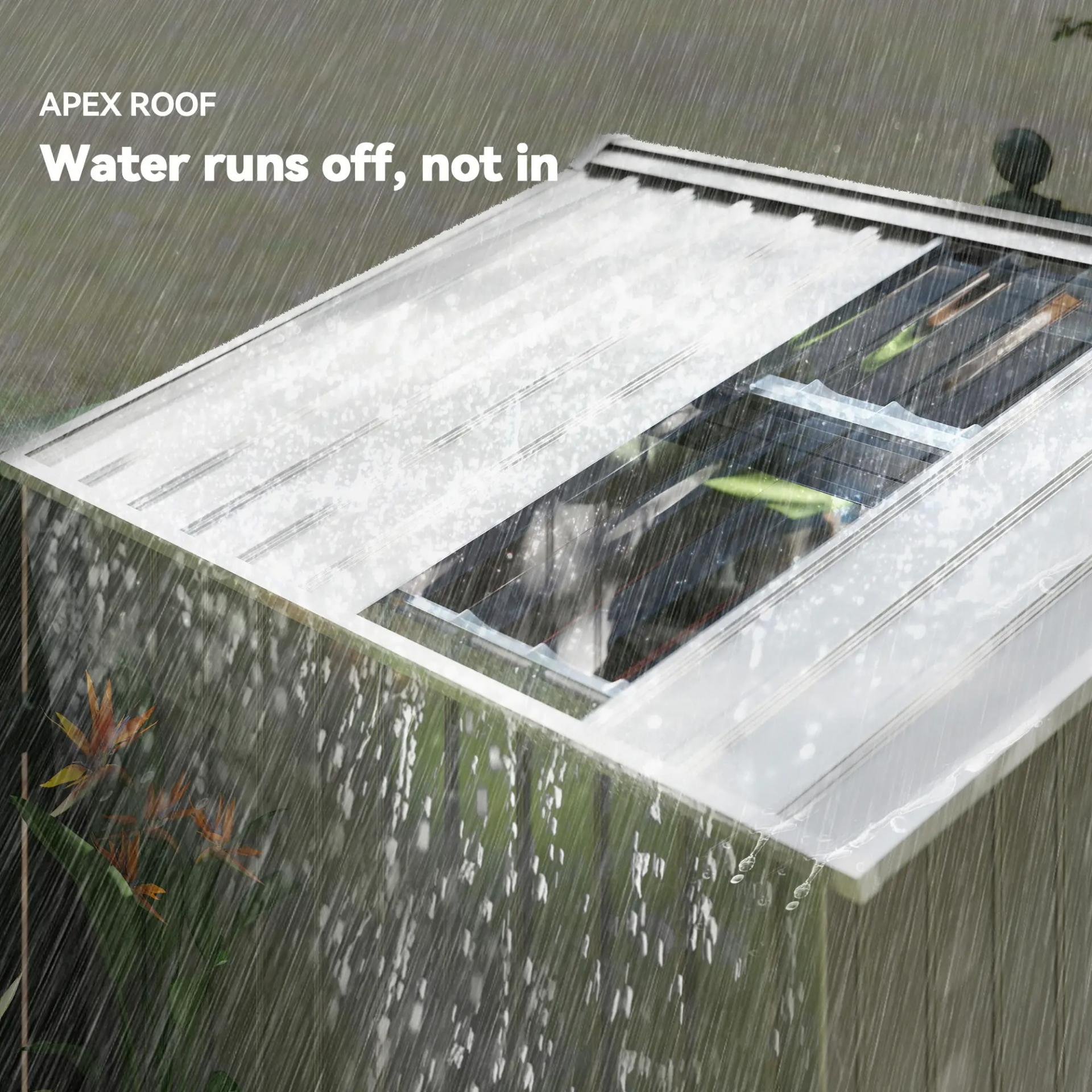 - RESISTENTE: Caseta de jardín exterior con estructura de acero galvanizado resistente a la corrosión, muy duradera y resistente, protege del viento, las inclemencias del tiempo, la humedad y el polvo